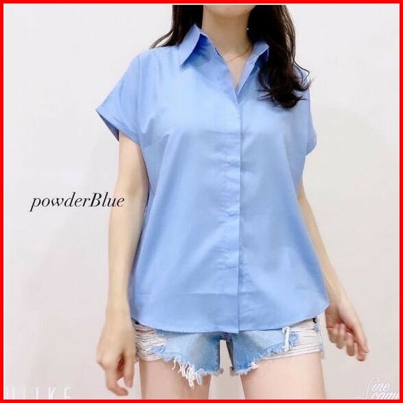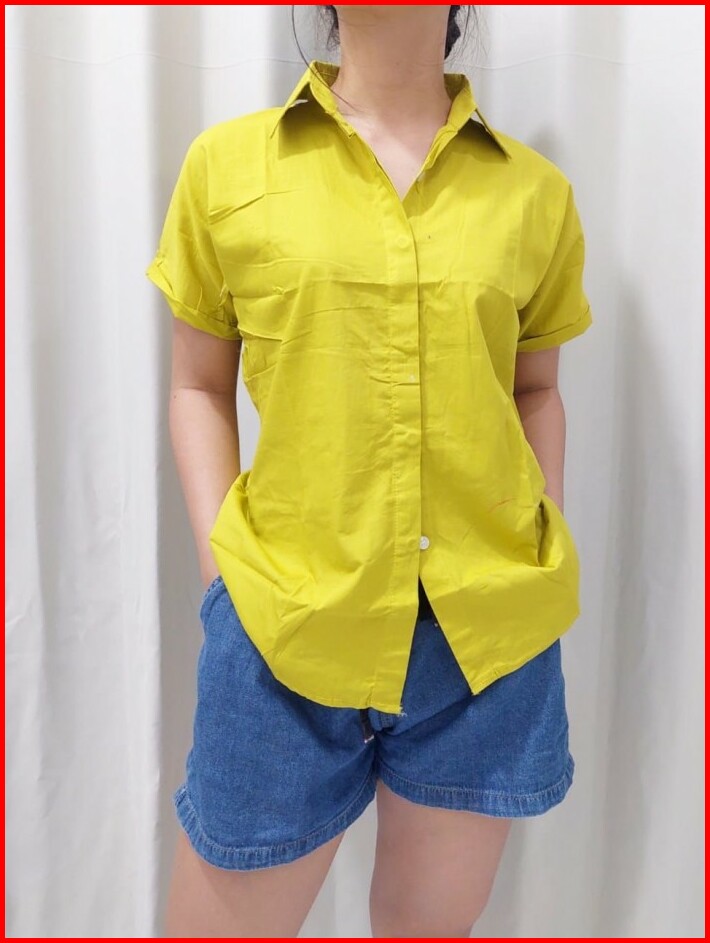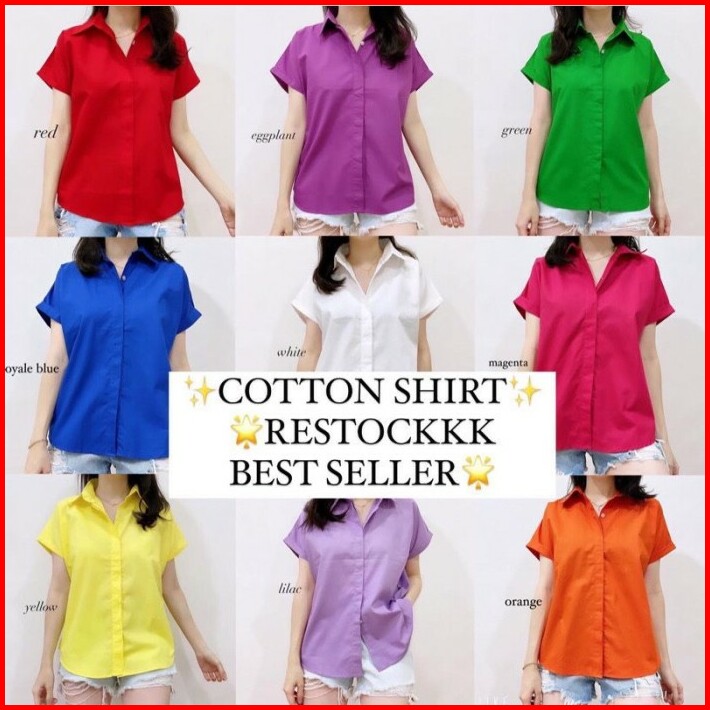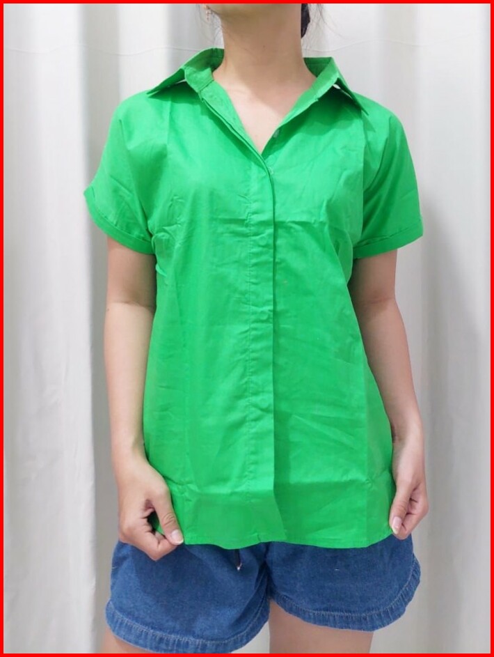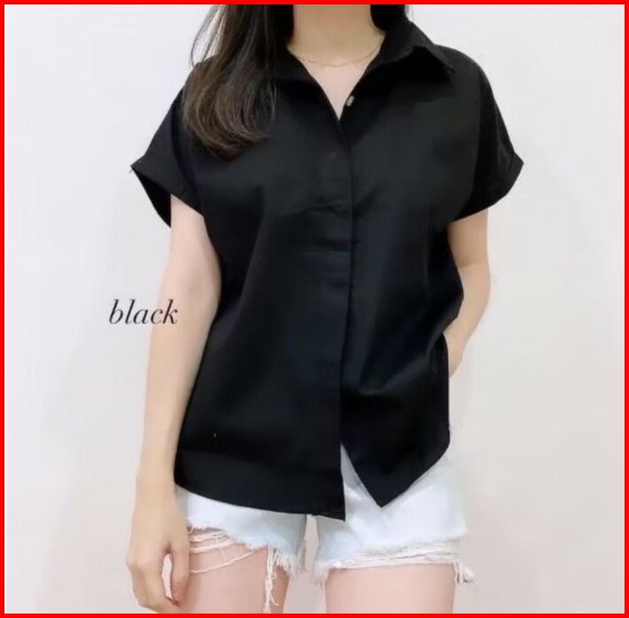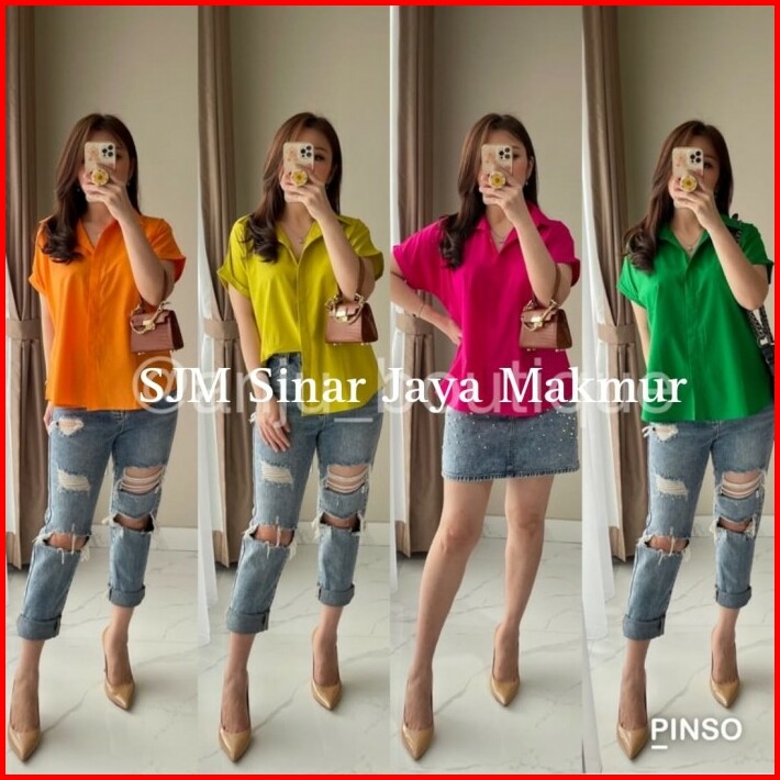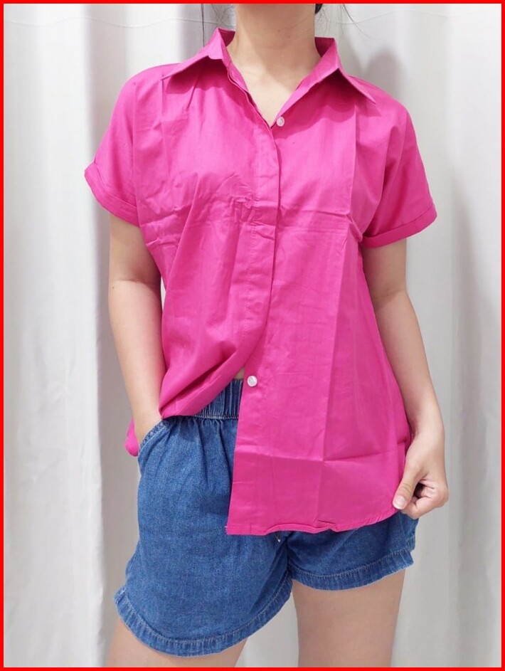 Sjm Kemeja Batwing Lengan Pendek Warna Wanita Poplin Premium Fuschia