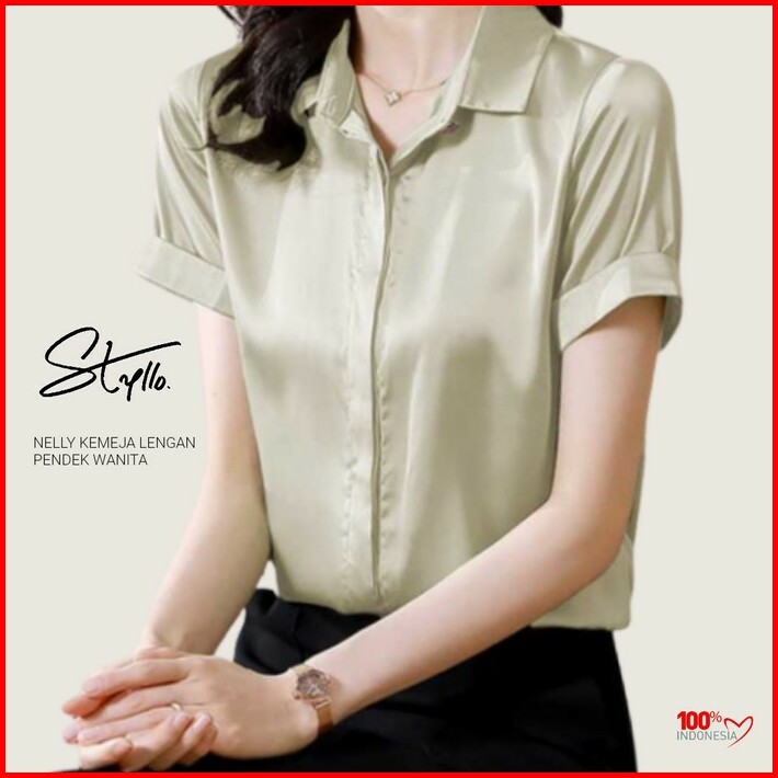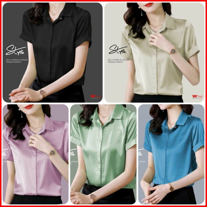 Kemeja Lengan Pendek Wanita Polos Nelly Casual Formal Black Hitam