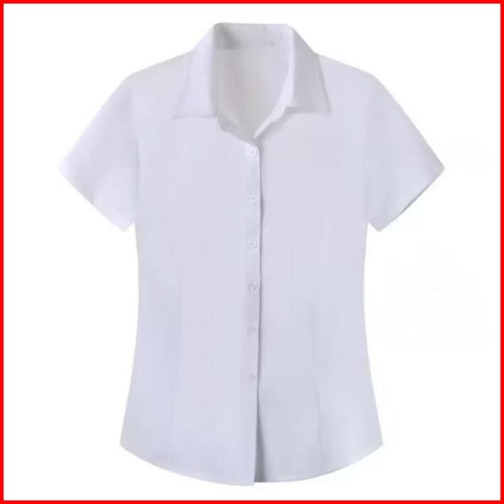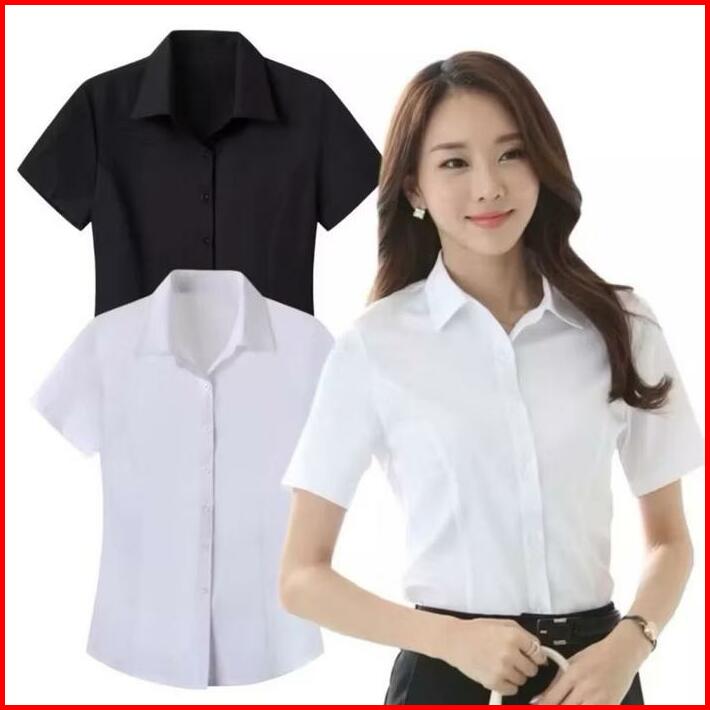Kemeja Putih Wanita Lengan Pendek Formal Kasual Hitam Putih