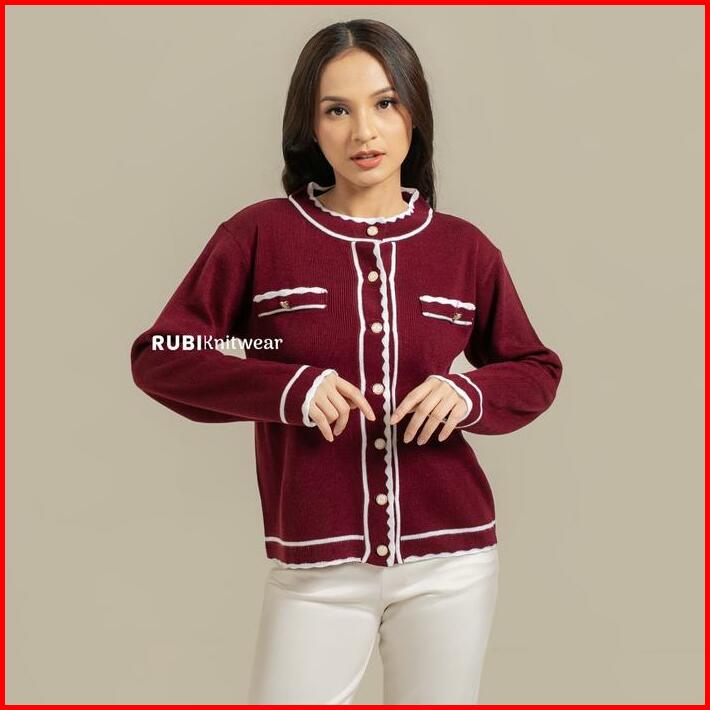 Rubi Hazel Cardigan Knitwear Wanita Atasan Panjang Baju Tebal Atasan Panjang Sweater Oversize Outer Crop Top Cewek Casua