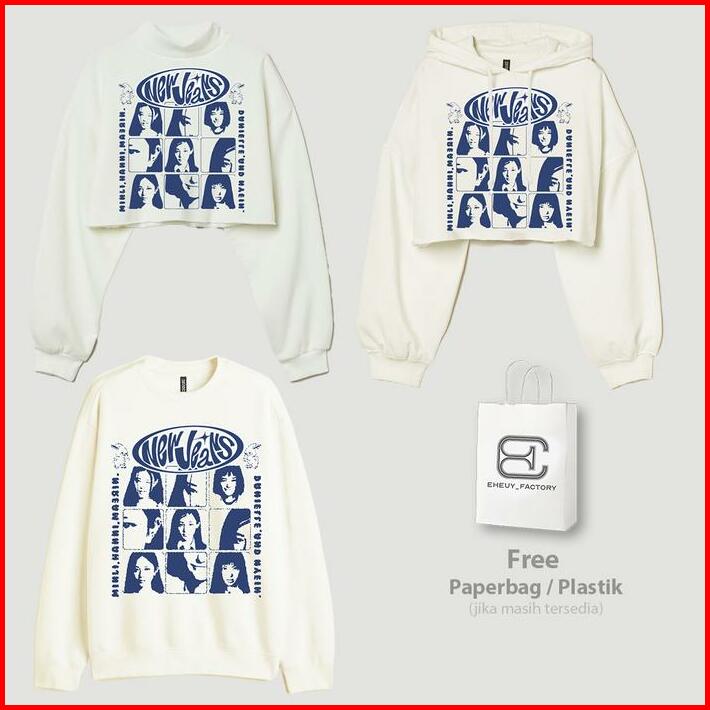 Hoodie Crop New Jeans Broken White Atasan Crewneck Oversize Wanita New Jeans Sweater Kaos Korean S