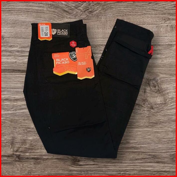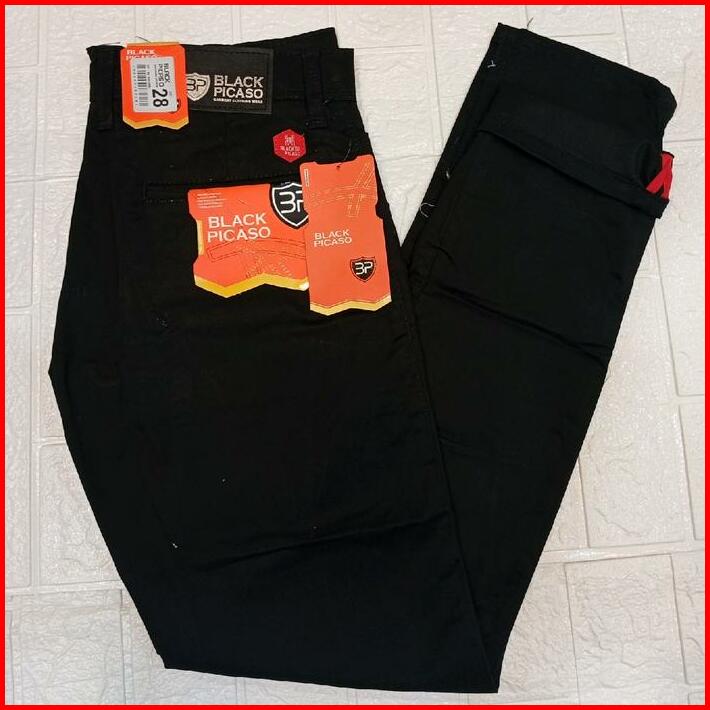 Celana Chino Katun Black Picasso Slimfit Bahan Karet Panjang Pria Dewasa Bawahan Pria Laki-laki Cowok Dewasa Santai