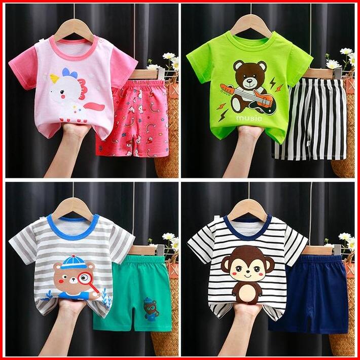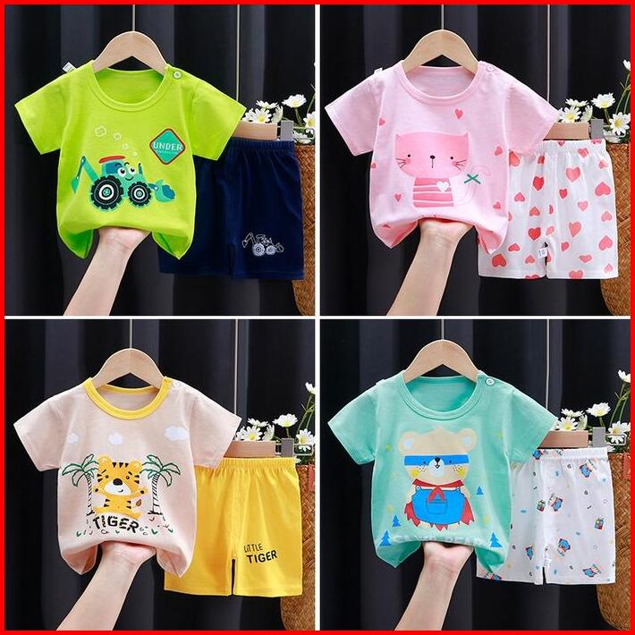 Kangbabe Baju Setelan Anak Bayi Laki-laki Perempuan Lengan Pendek Tambahan Celena Yang Lembut Dan Adem Katun Unisex Pars