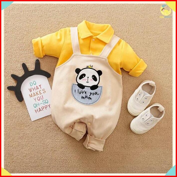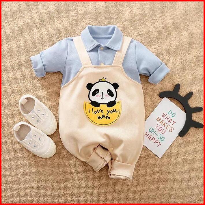 Baju Jumper Newborn Anak Laki-laki Dan Cewek Motif Panda Usia 0-24 Bulan Jumpsuit Lengan Panjang Bayi Lucu Bahan Katun I