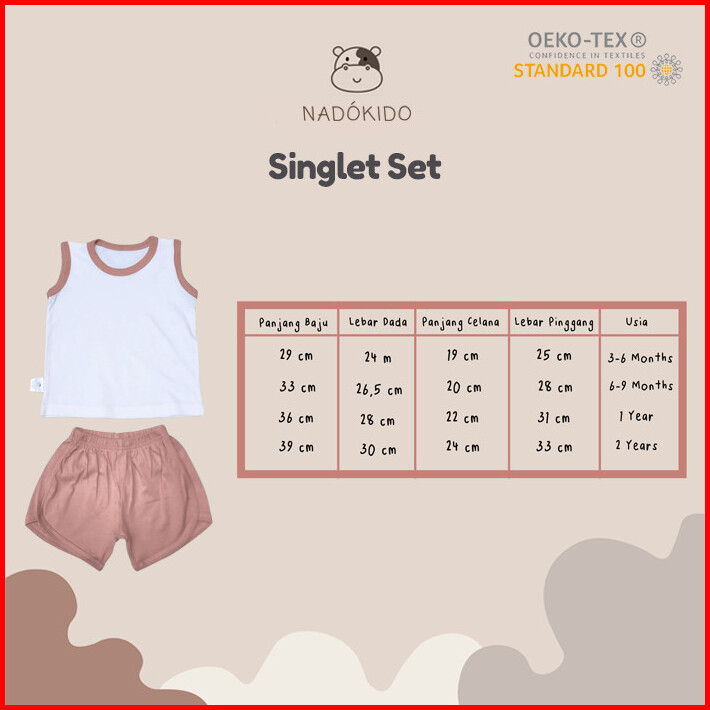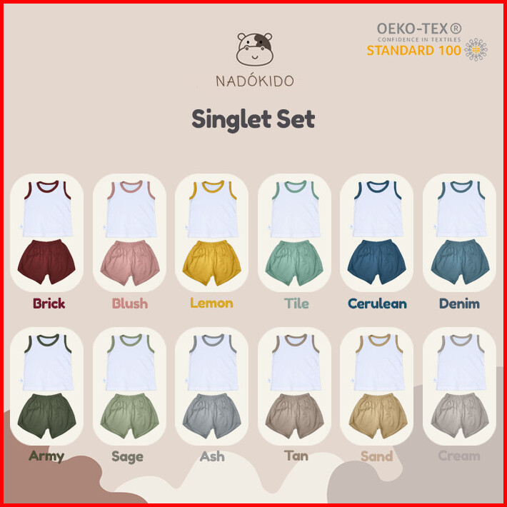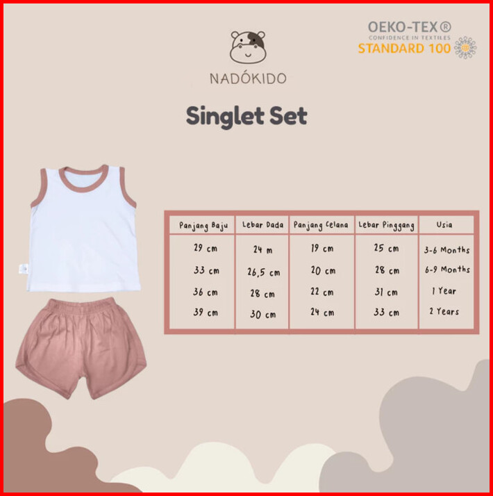 Nadokido Singlet Set Kaos Oblong Baju Celana Pendek Setelan Anak Bayi Polos 0