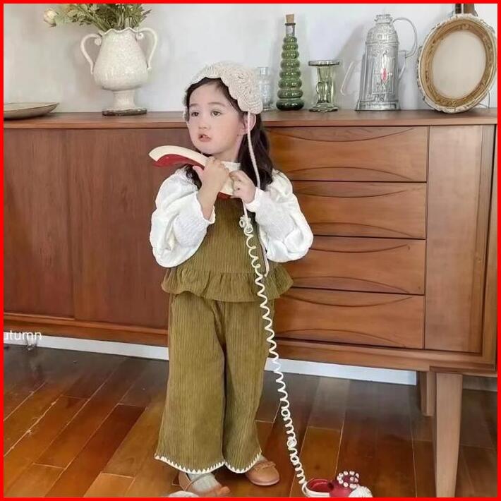 Jasmine Babyset Pakaian Untuk Anak Perempuan Terdiri Dari Baju Atas Dan Celana Desain Dengan Pita Di Dada Dan Lengan Bal