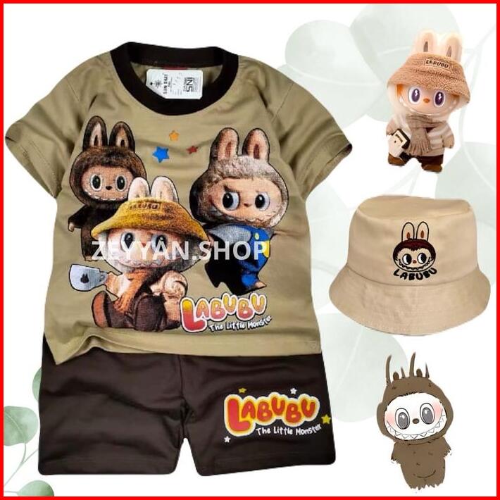Baju Anak Cewek Cowok Motif Labubu Setelan Anak Laki Laki Dan Perempun Motif Labubu Untuk Umur 1-10 Tahun Bahan Kaos Kat