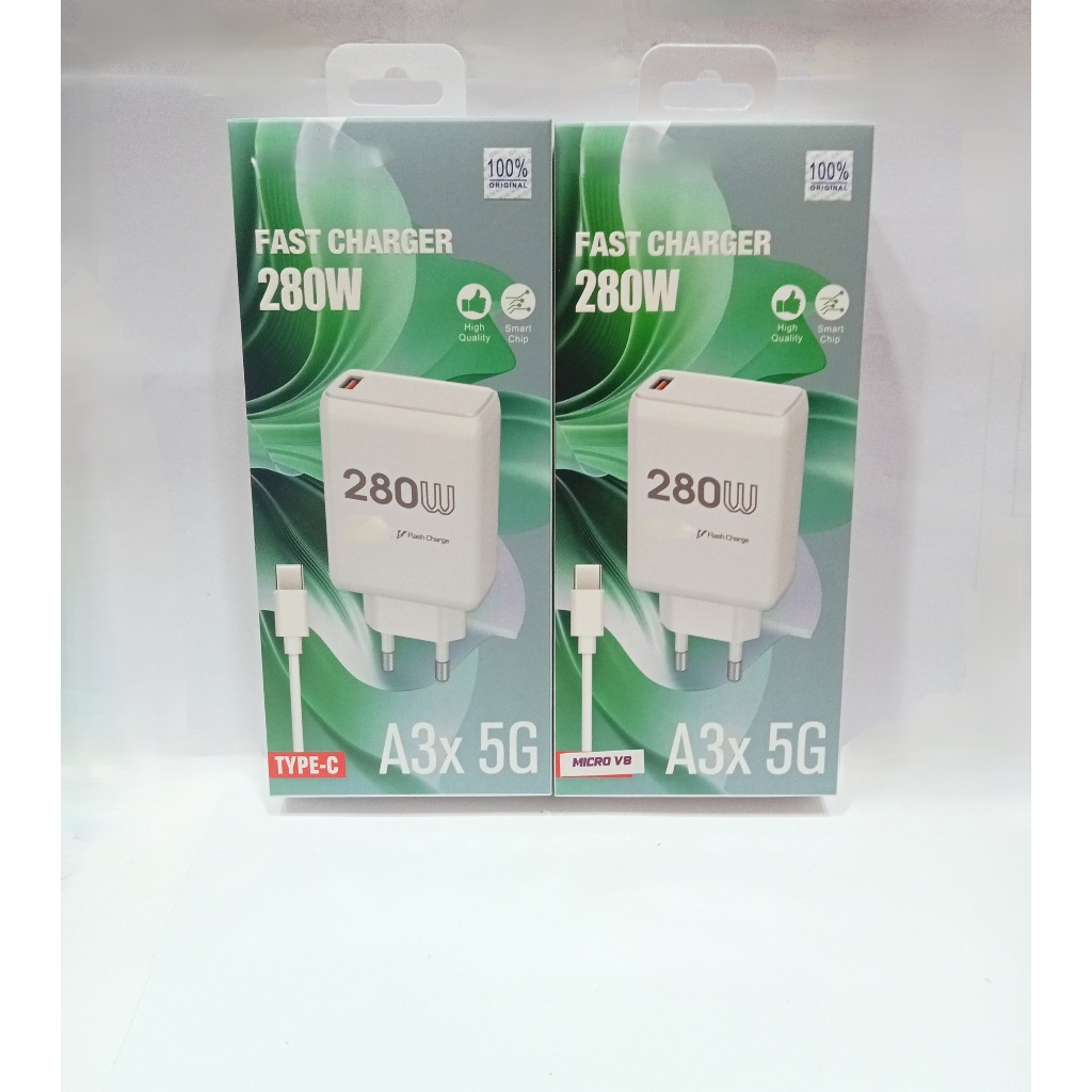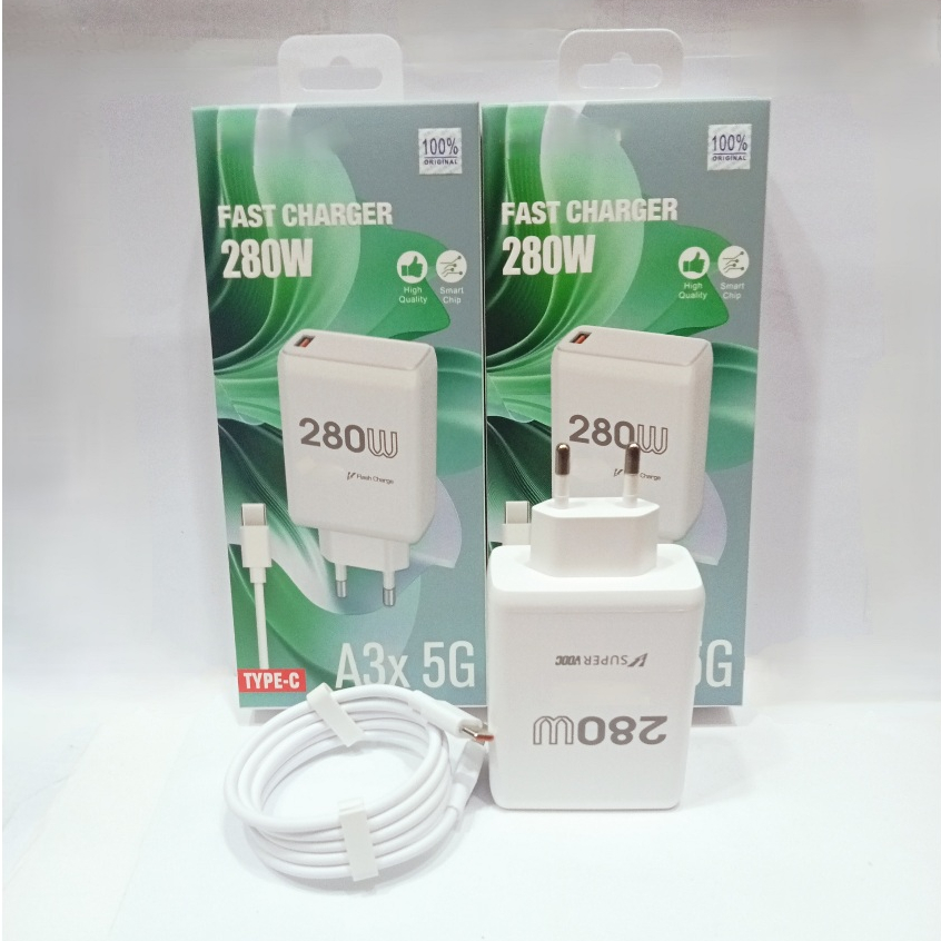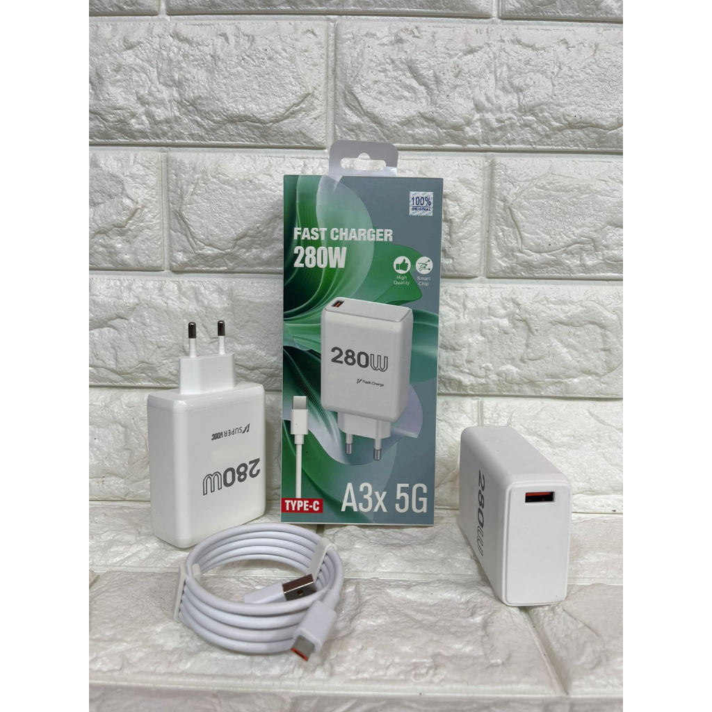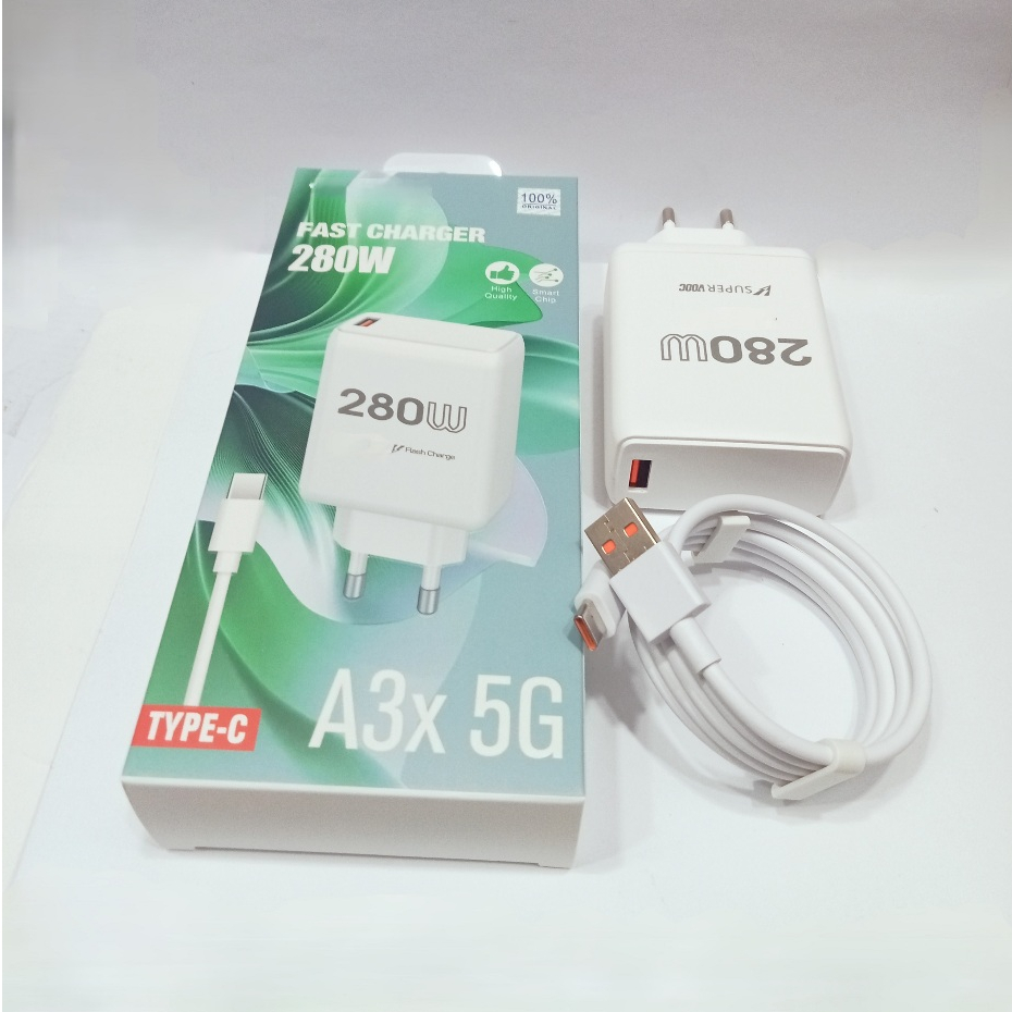 Charger For OPP A3X 5G Fast Charger 280W SUPERVOOC Batok Adapter + Kabel USB Support Fast Charging