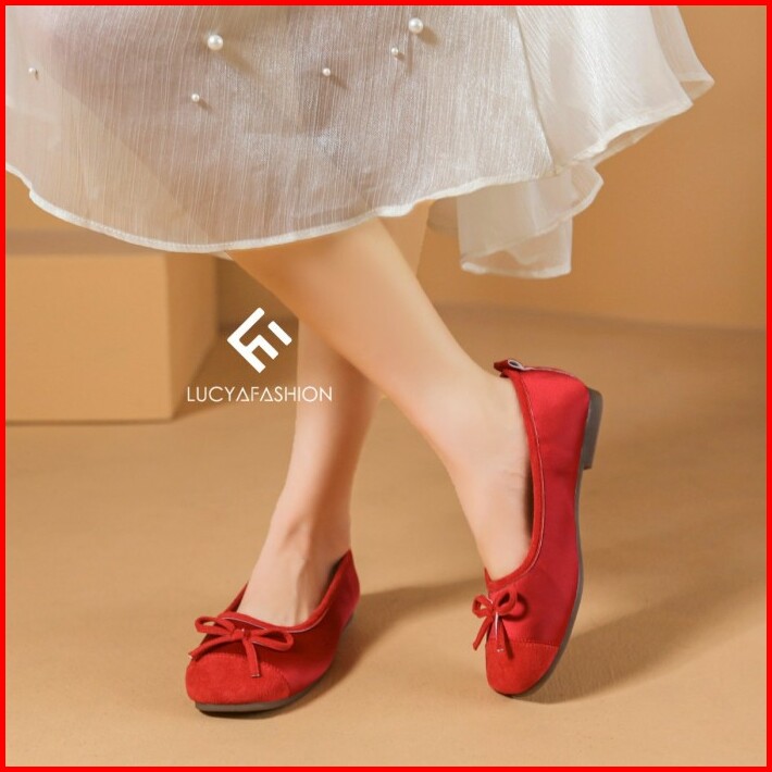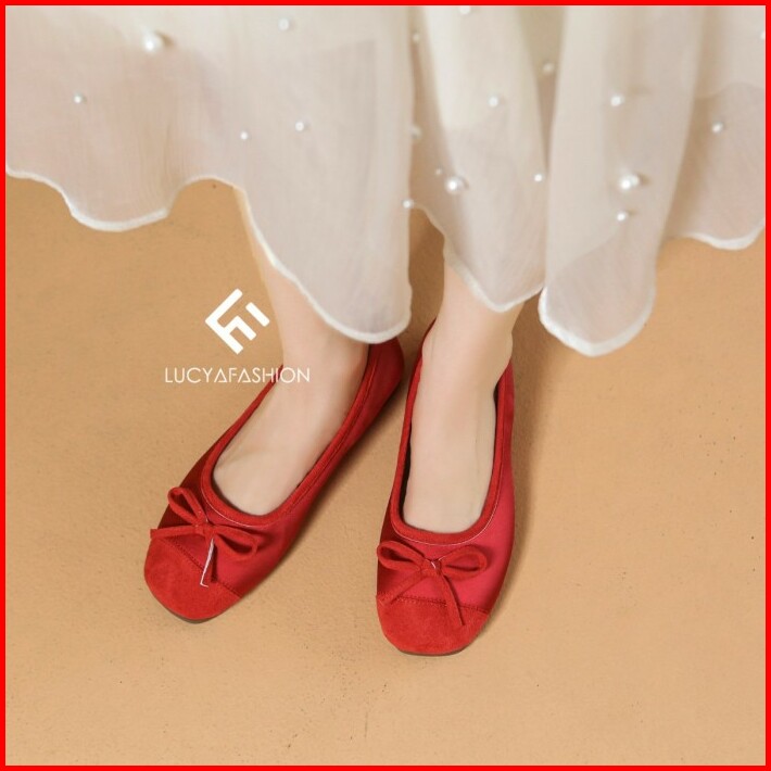 1314 Flatshoes Coquette Merah Wanita Kekinian