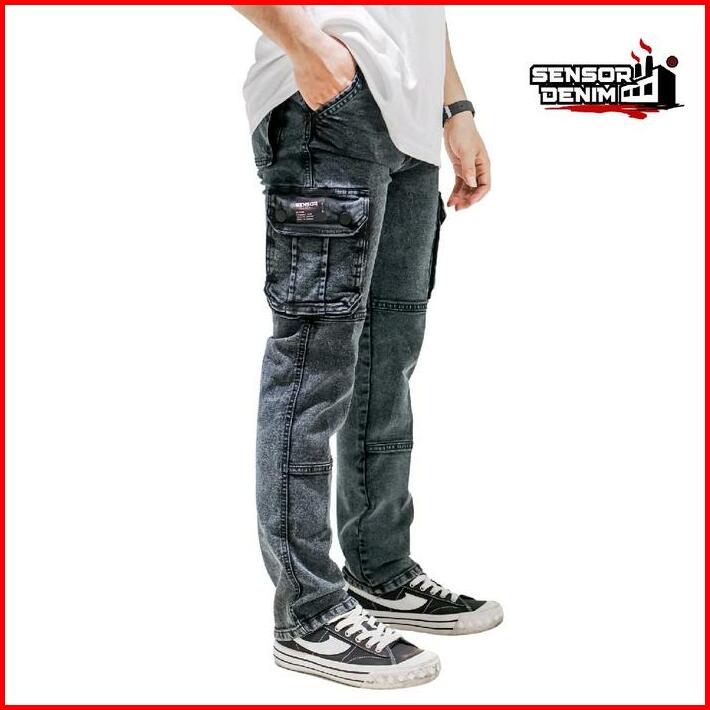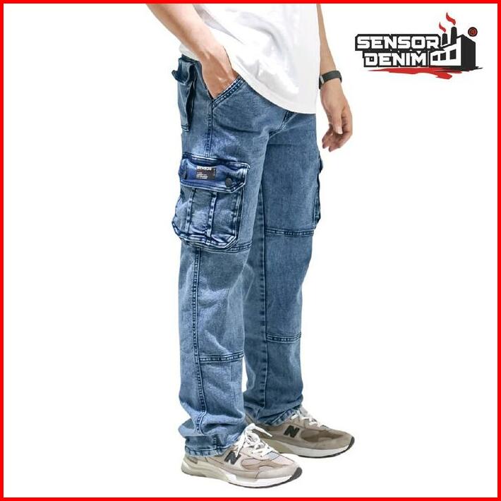 Celana Jeans Cargo Pria Model Loose Fit Sensorline