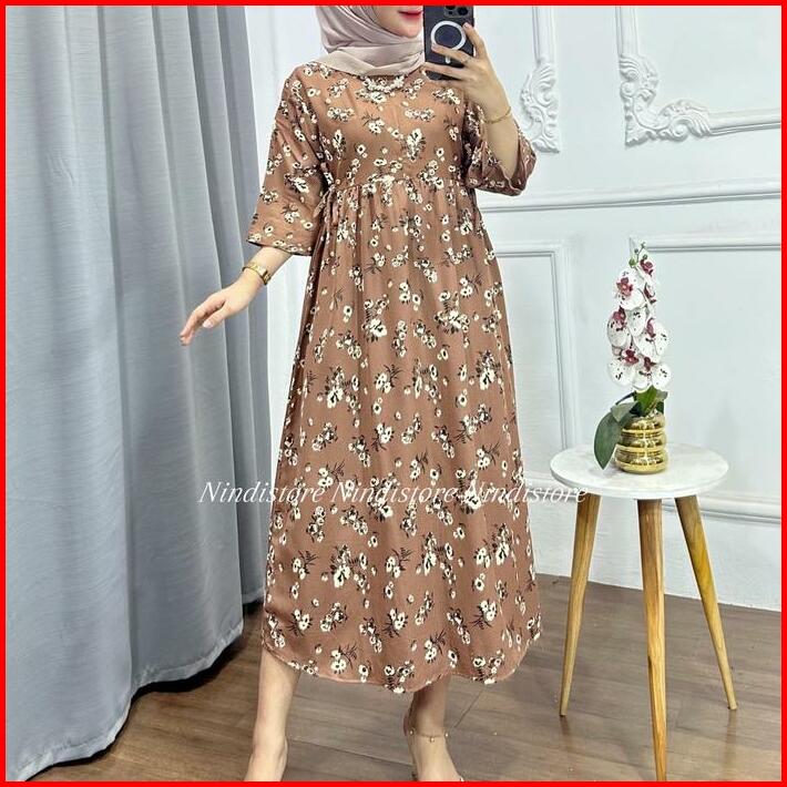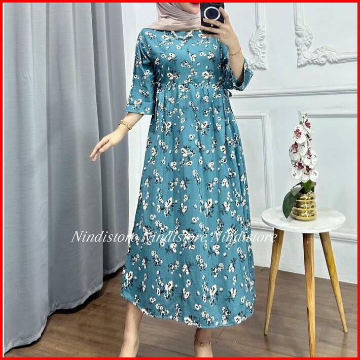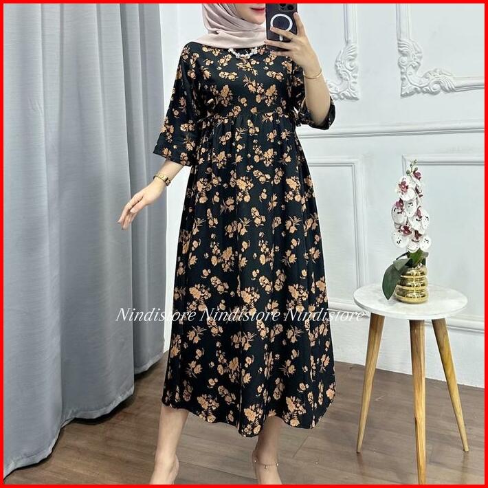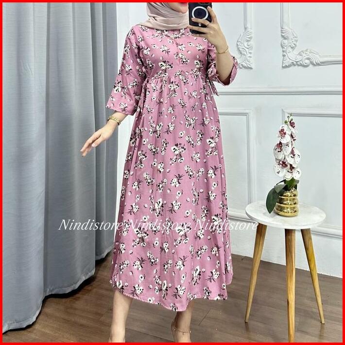 Midi Dress Rayon Daster Lengan 3 4 Busui Friendly Daster Jumbo Daster Rayon Bumil