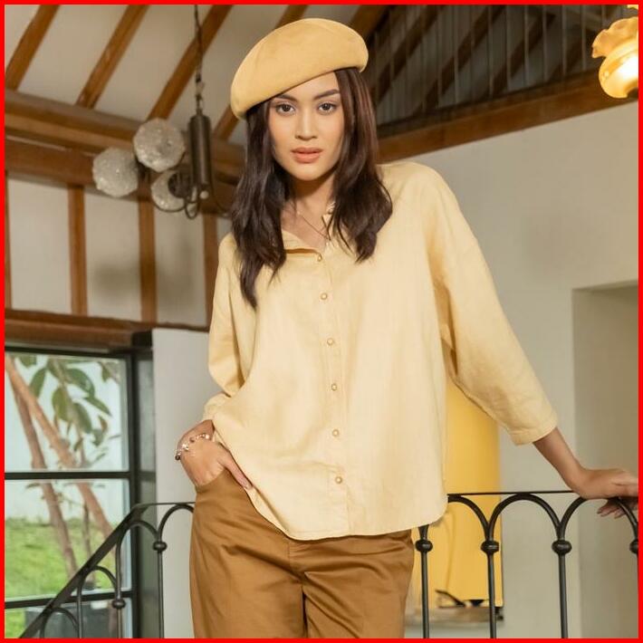C2 Fionie Yellow 7 8 Kemeja Casual Oversize Wanita