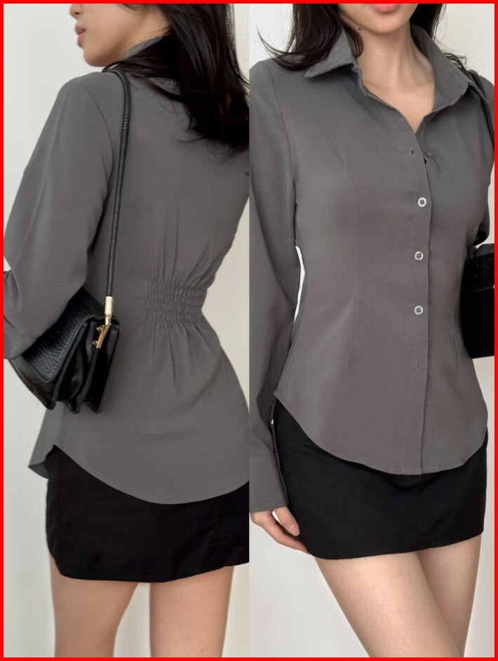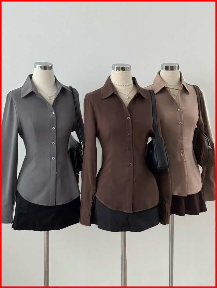 Kadaka T-0552 Long Sleeve Fitted Shirt Atasan Kemeja Wanita Polos