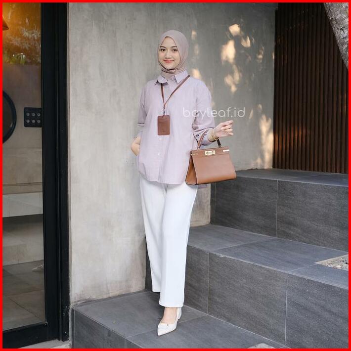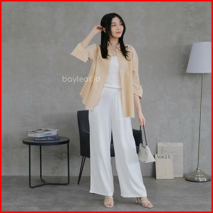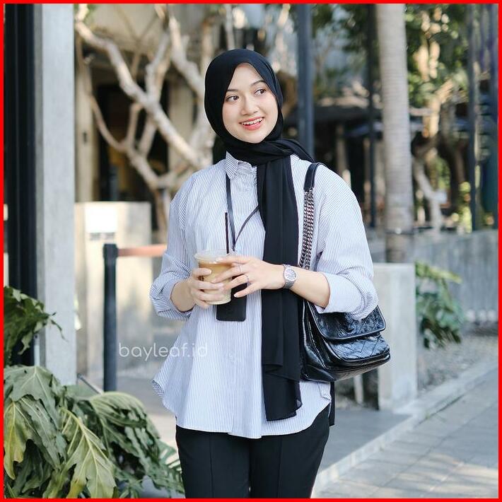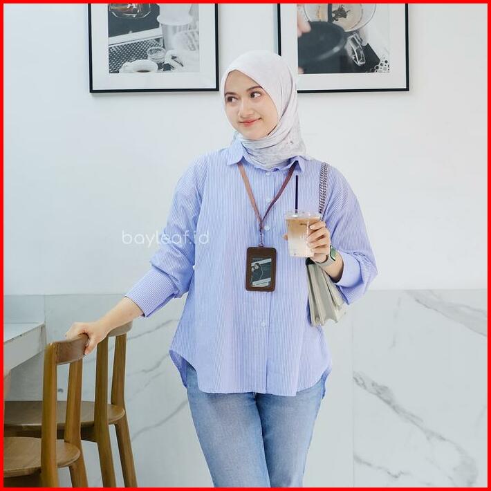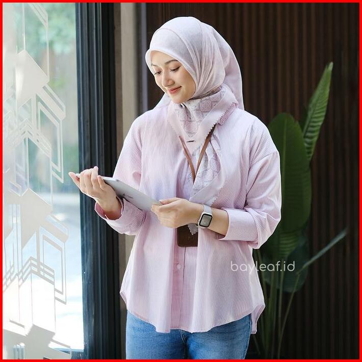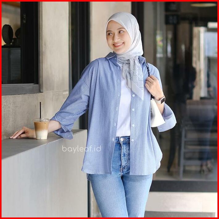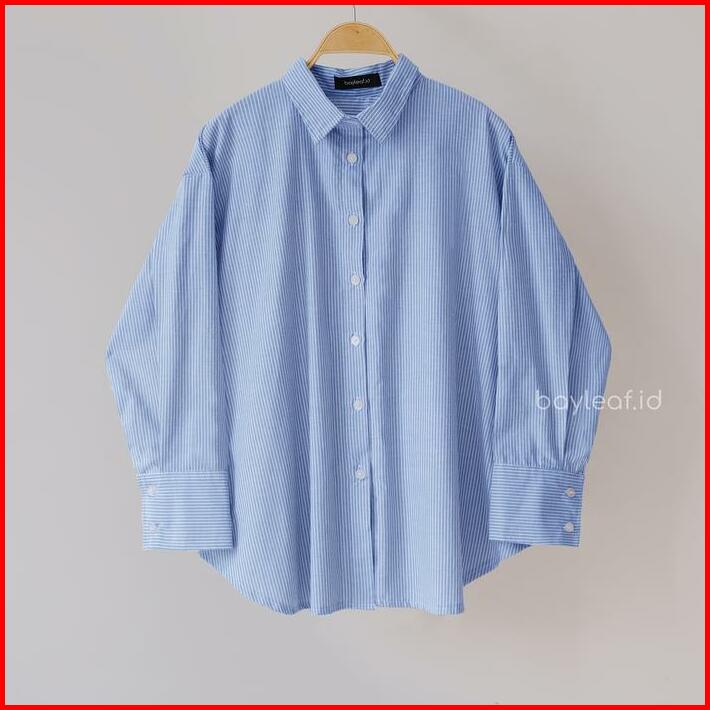Bayleaf.id Prisia Striped Shirt Atasan Bergaris Kemeja Casual Wanita Motif Garis Kemeja Garis Kemeja Kerja