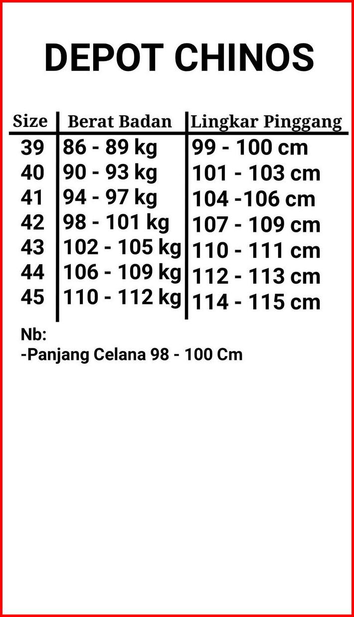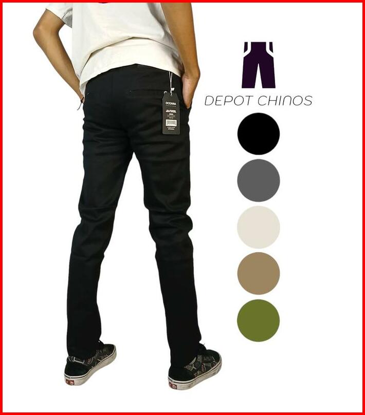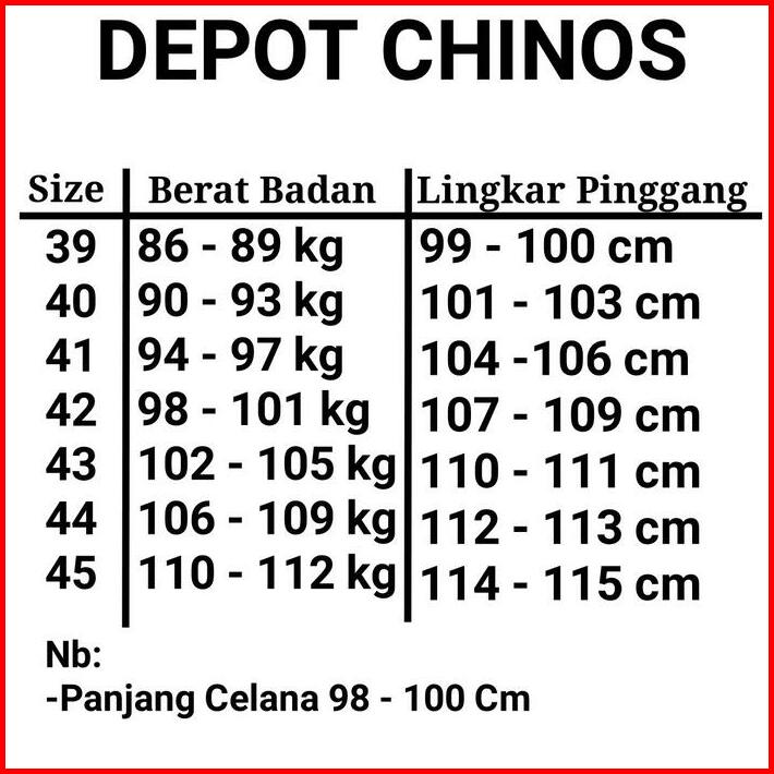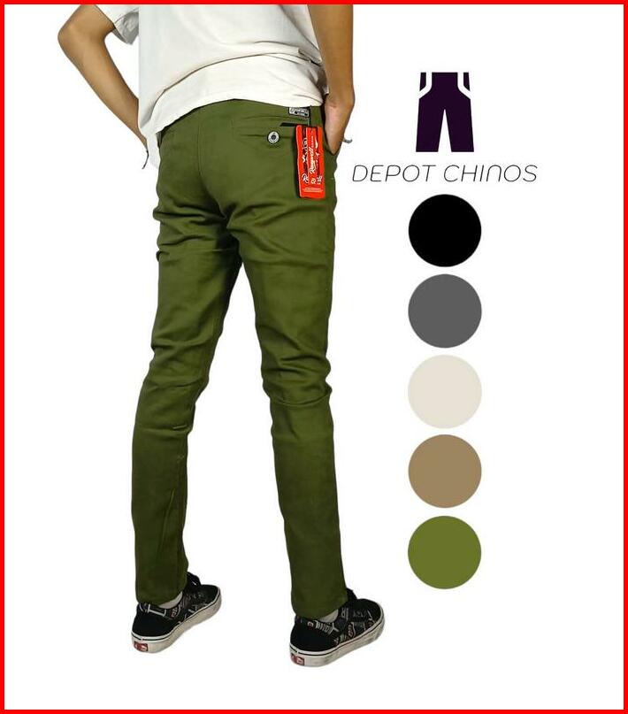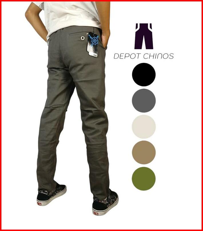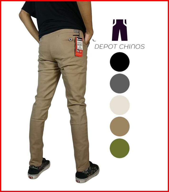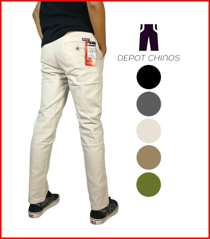 Jumbo Celana Chinos Panjang Slimfit Bahan Cotton Stretch Premium Size 39-45 Hitam Abu Tua Mocca Krem Army
