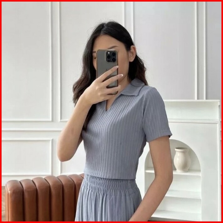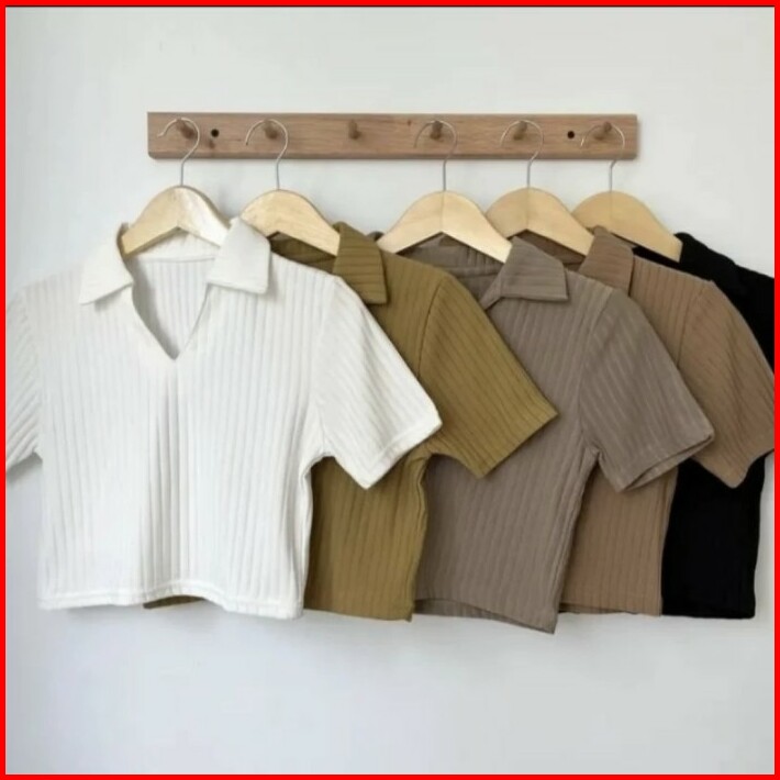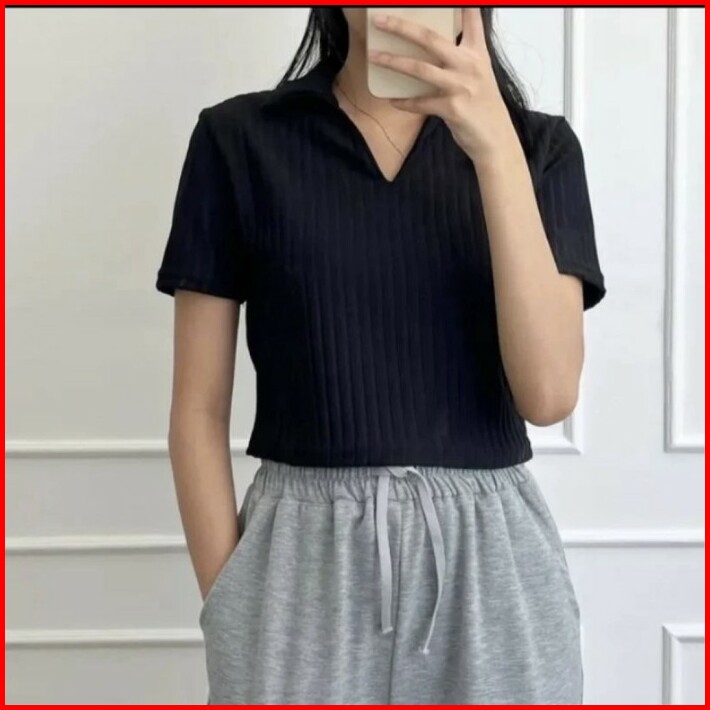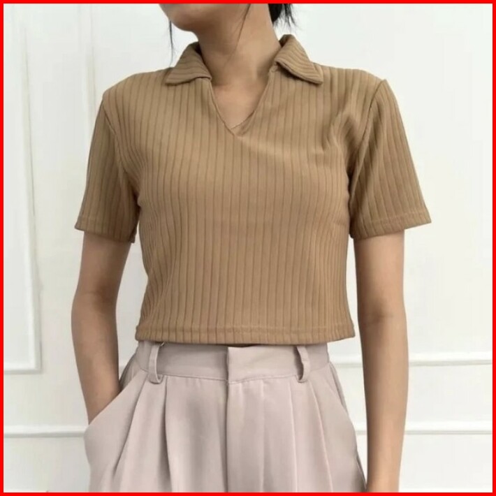 Kaos Kerah Polo Wanita Crop Top