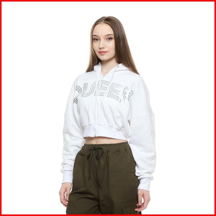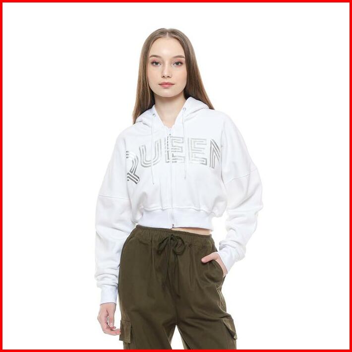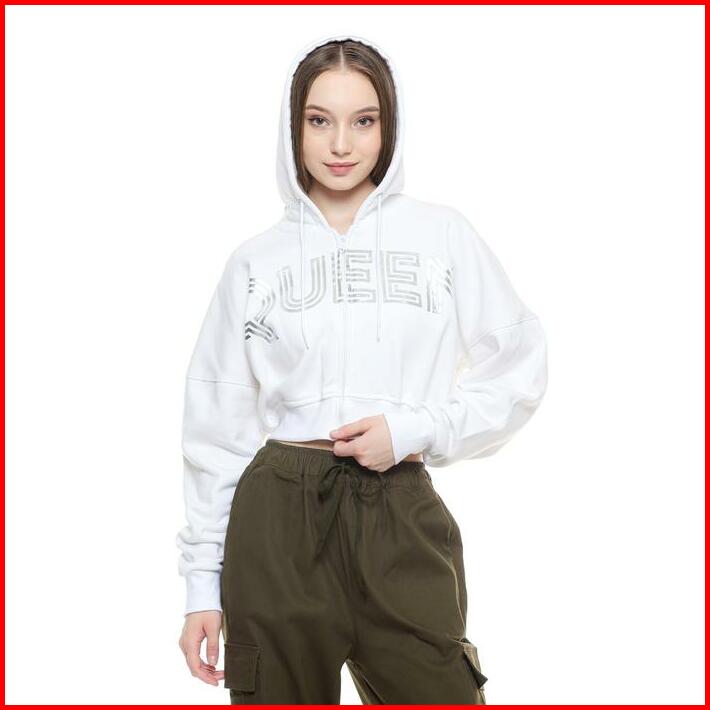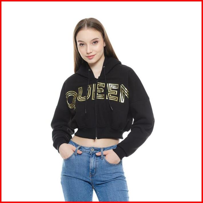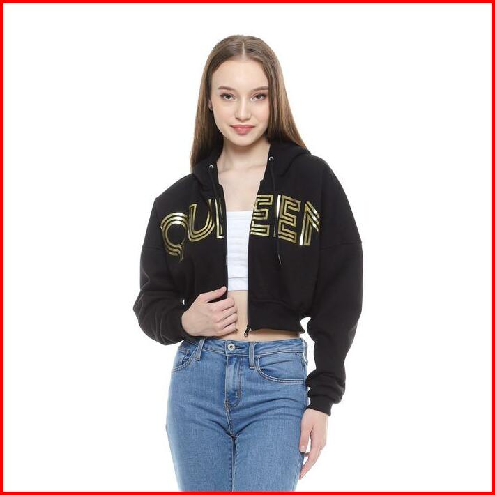 HOODIE CROP ZIPPER QUEEN BLACK GOLD, HOODIE CROP ZIPPER QUEEN WHITE SILVER