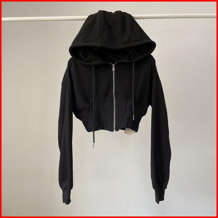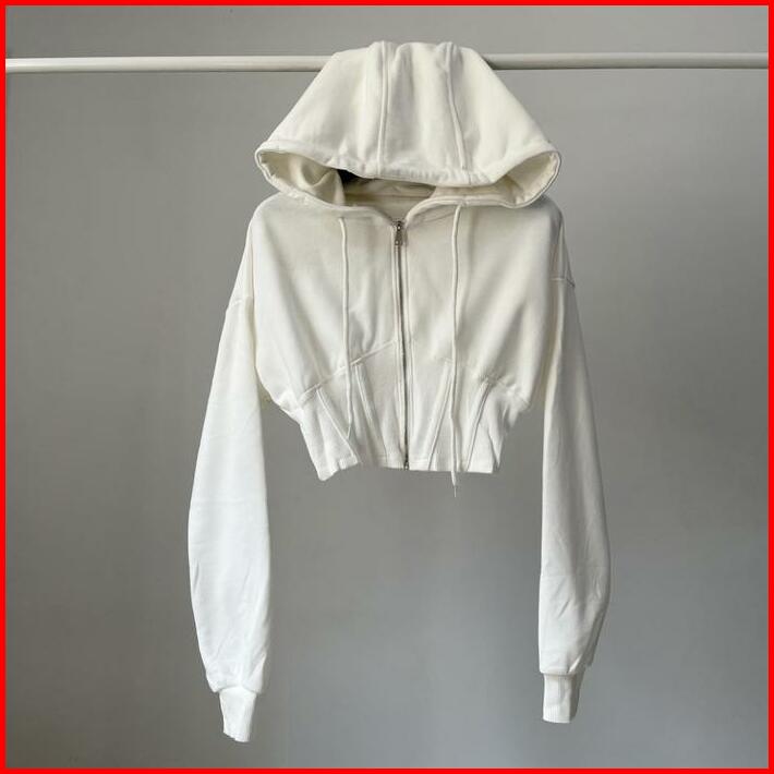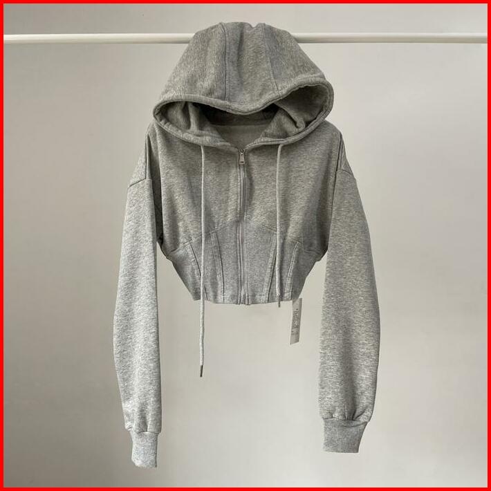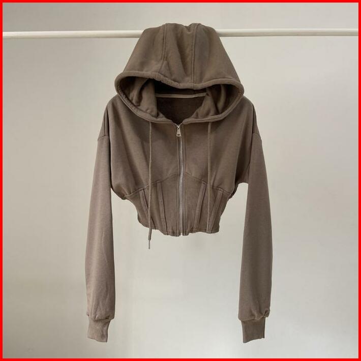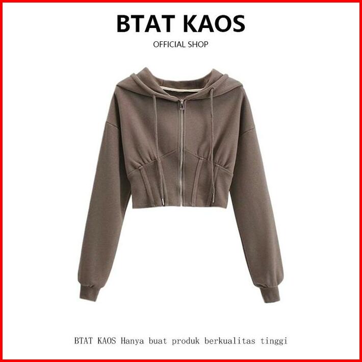 Btat Hoodie Zipper Wanita Crop Hoodie Korean Style Jaket Polos Korean Style Wanita Sweatshirt Lengan Panjang Katun
