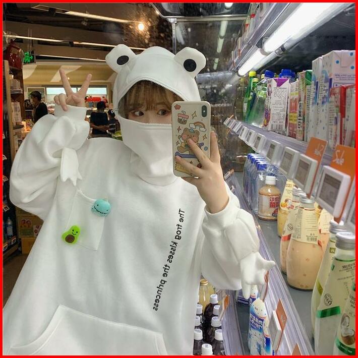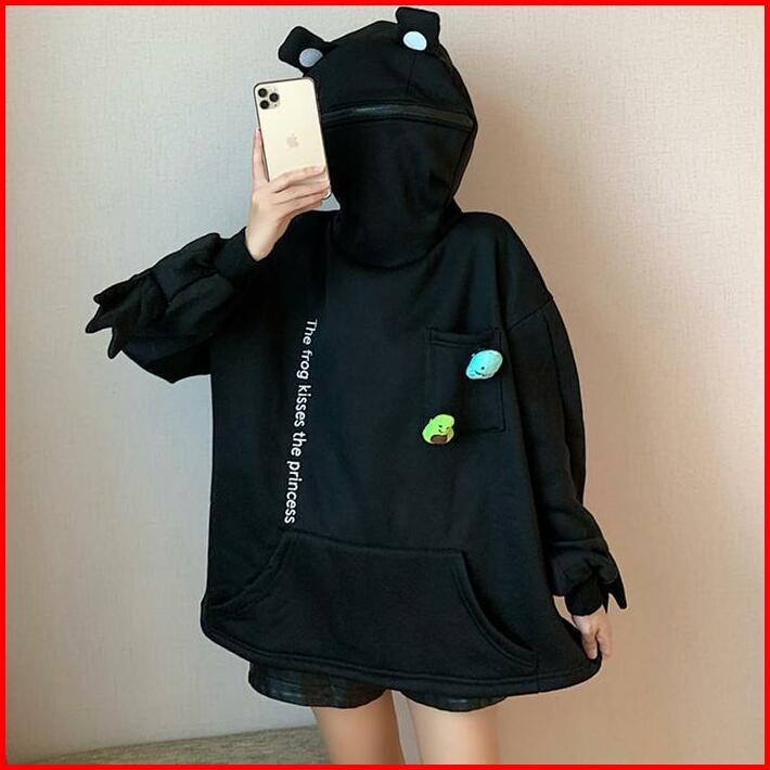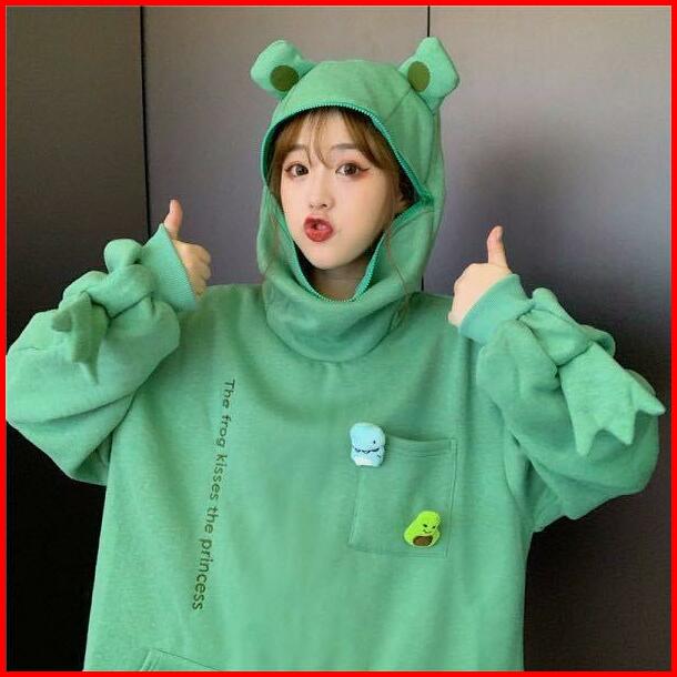 Luckydino Hoodie Oversize Katak Frog Hoodie Topi Full Zipper Lucu Avocado Dino Hoodie Unisex Besar Korean Style