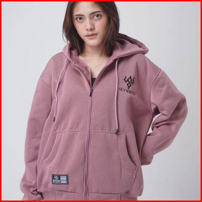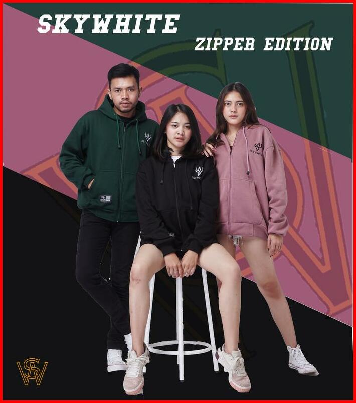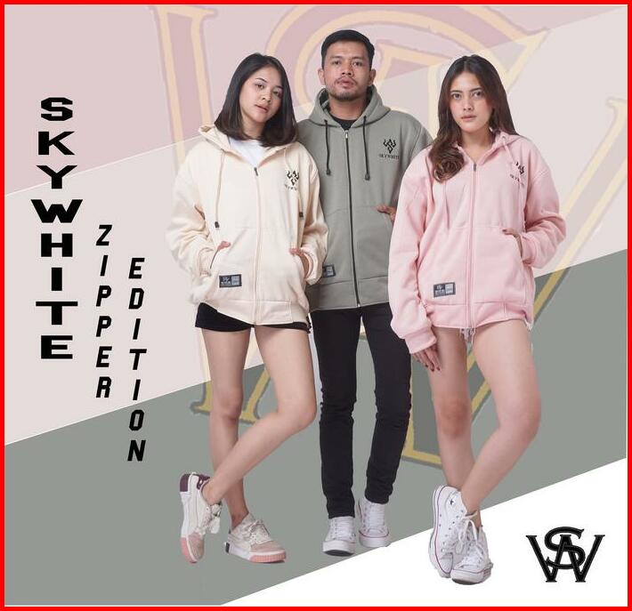 Skywhite Hoodie Sweater Zipper Resleting 280gsm Unisex Bordir Lembut Tebal