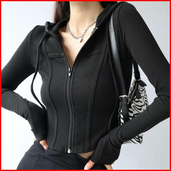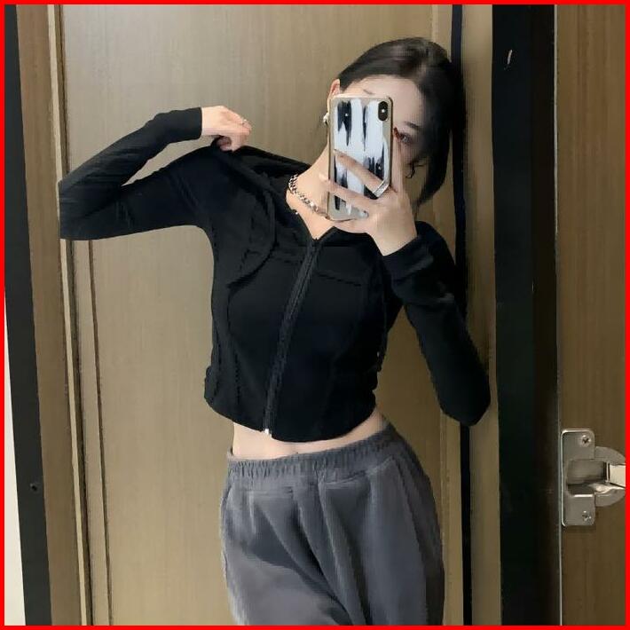Jacket Crop Haerin Grania Premium Jacket Zipper Hoodie Knit Crop Top Wanita Outfit Kekinian Ntr Nyaman Tangan Panjang Ja