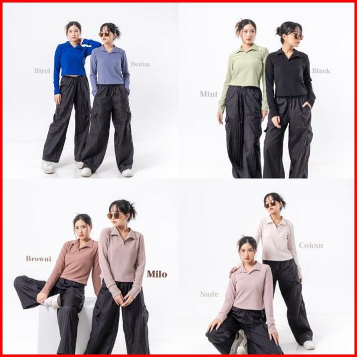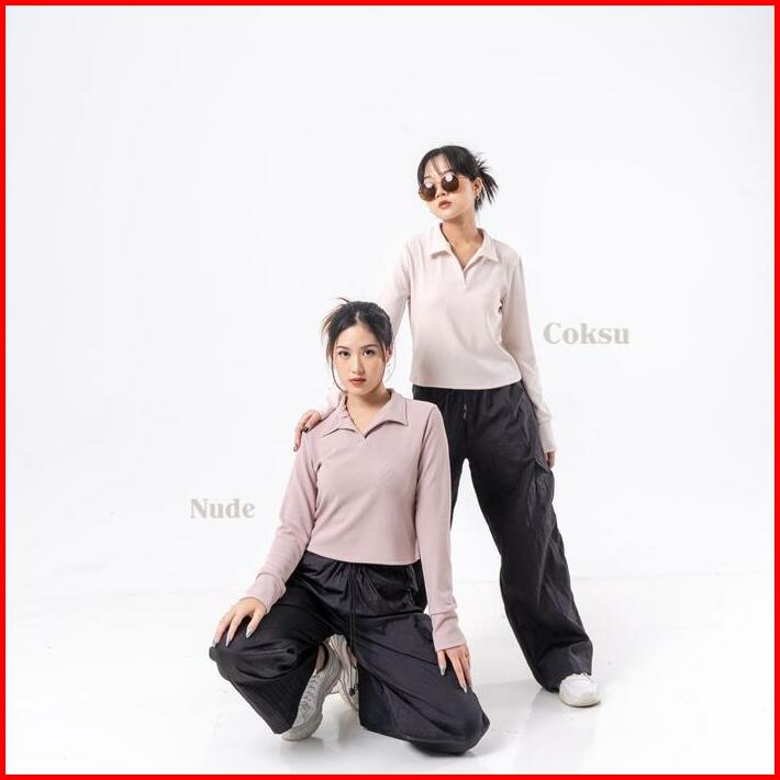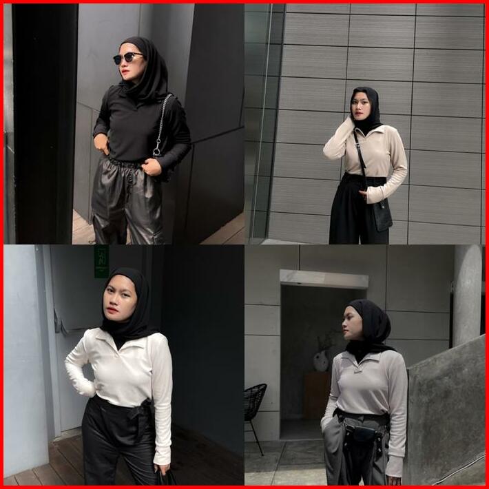 Hl Yasmin Polo Shirt-polo Knit Panjang Wanita Atasan Kerah Atasan Knit Kaos