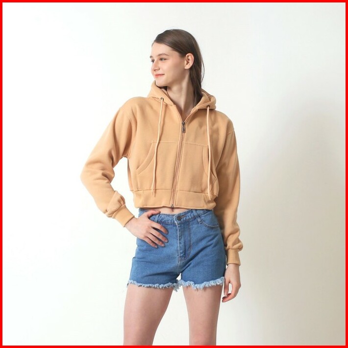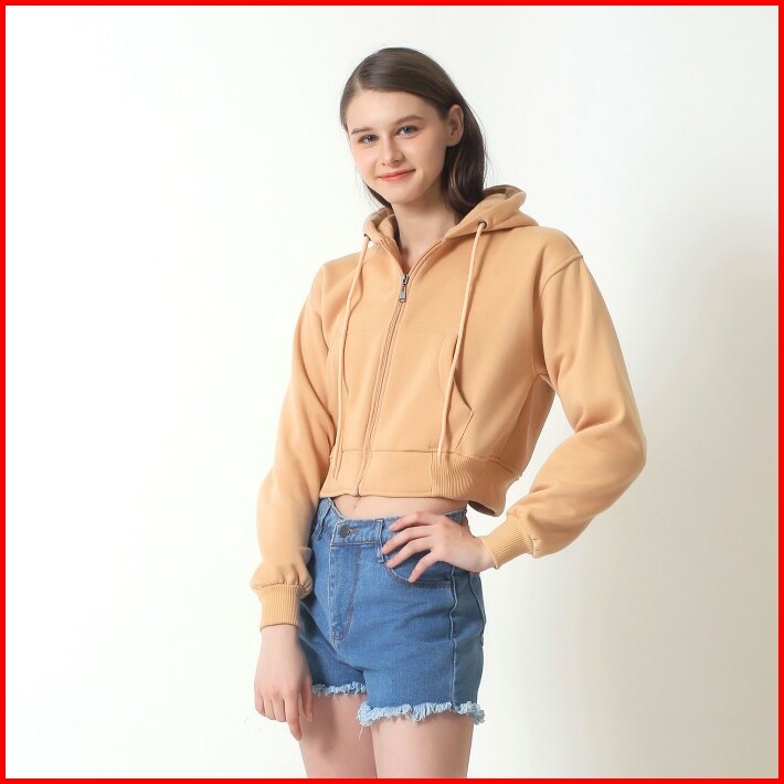 Oblo Hoodie Crop Zipper Wanita Hoodie Sweater Resleting Allsize