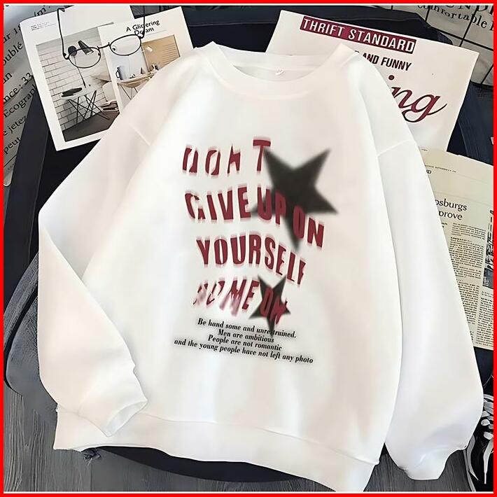 Sweater Crewneck Oversize Pria Dan Wanita Dont Give Up Hoodie Sweatshirt Unisex Distro Fleece Zipper Tebal Baju Atasan W