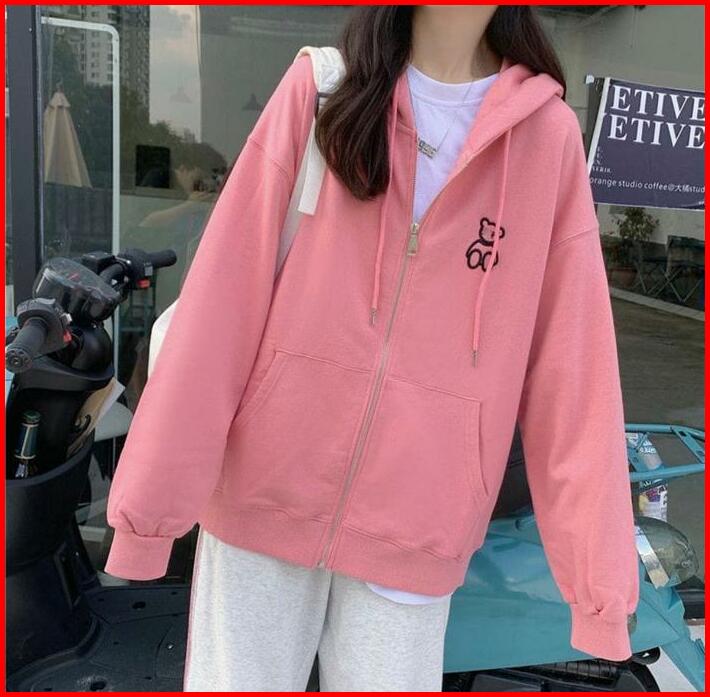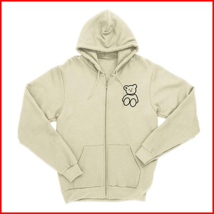 Hoodie Zipper Sablon Line Bear Size M-xxl Pria Wanita