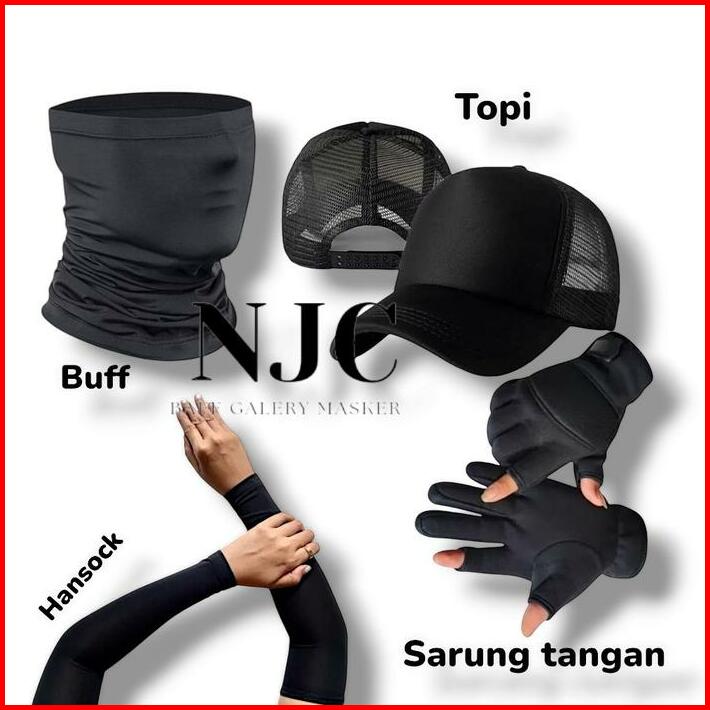 Paket Hemat Mancing Daidoo Sarung Tangan 2 Jari Buntung Baff Manset Topi Jaring