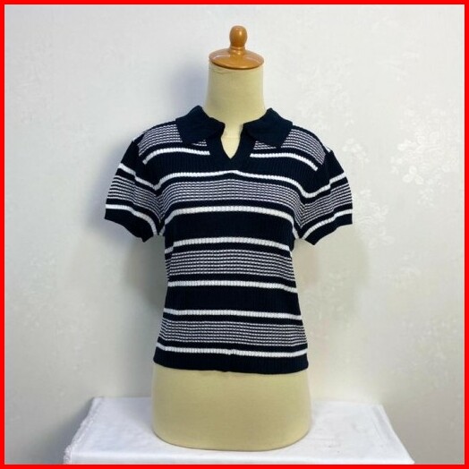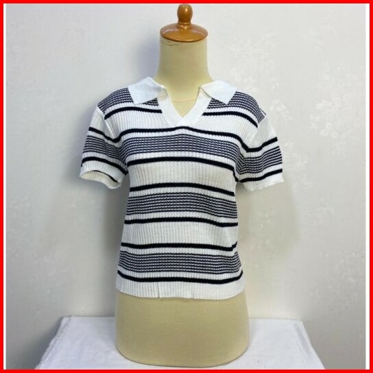 Atasan Kerah Polo Rajut Kaos Kra Salur Vneck T-shirt Atasan Wanita