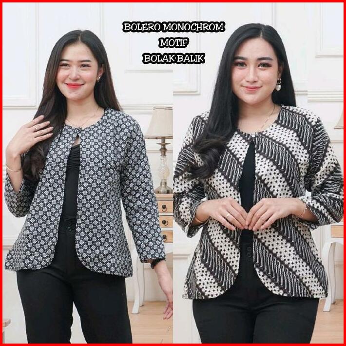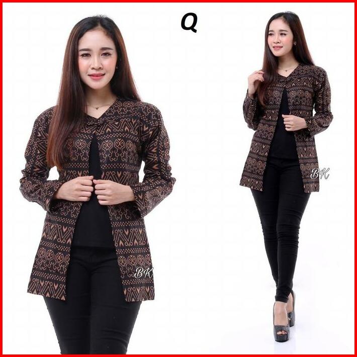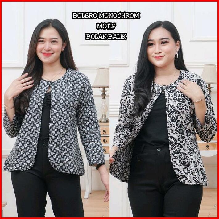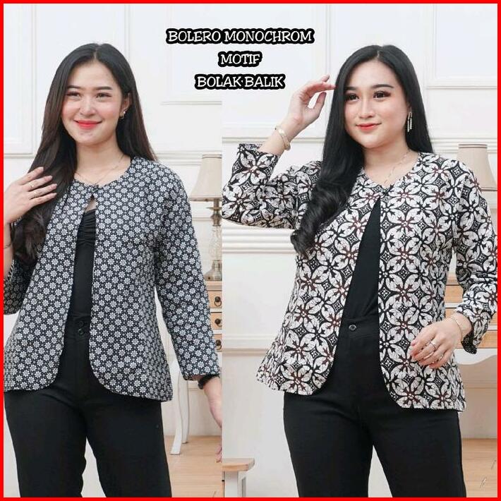 Outer Wanita Blezer Kerja Batik Bolak Balik 2 Motif 2 In 1 Real Pict Kancing Blazer Atasan Hitam Casual Kotak Panjang Ba