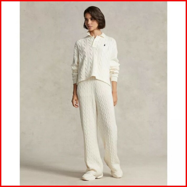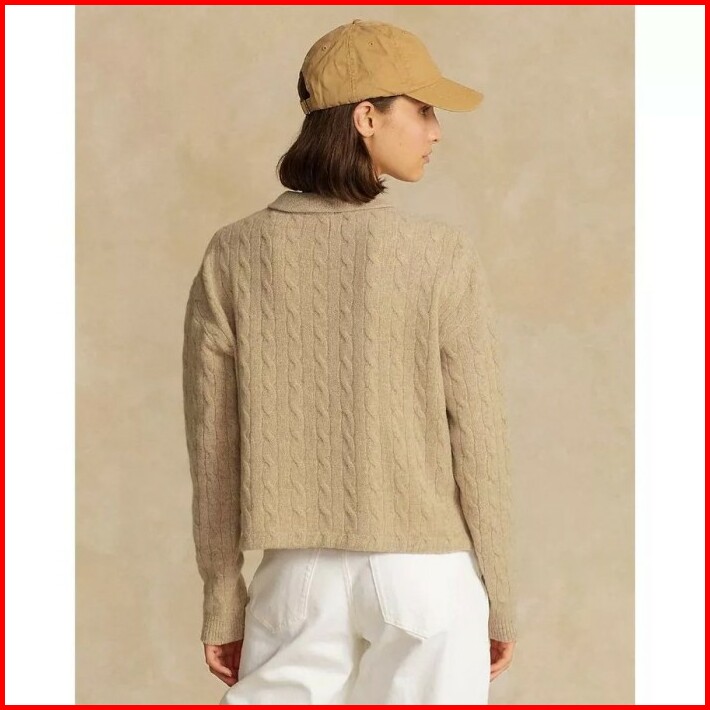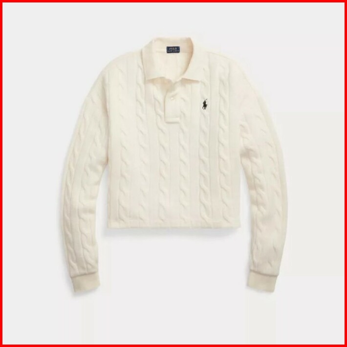 P L R Lph Lauren Cable Knitted Wool Polo Shirt
