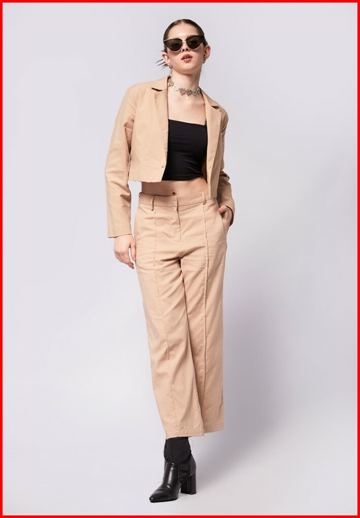 Colorbox Crop Rustic Blazer I-bzwkey124d034 Beige