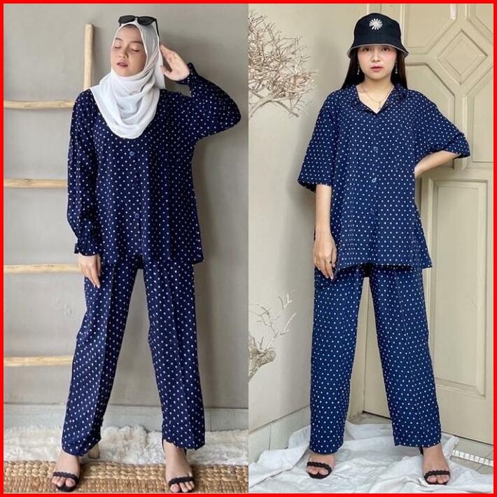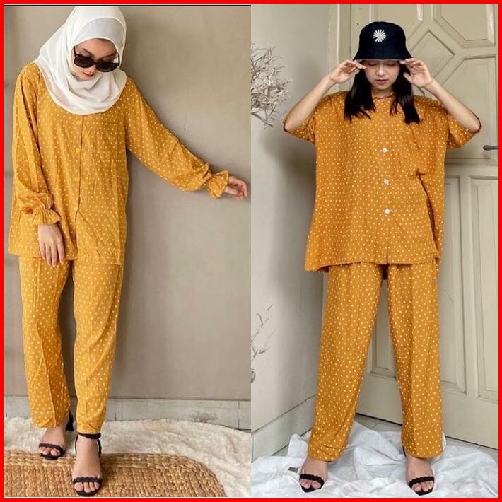Baju Tidur Piyama Wanita Katun Rayon Pajamas Dewasa One Set Tiedye Motif