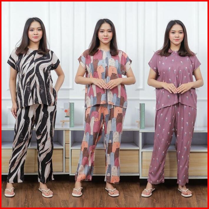 Pajamas Rayon Premium Baju Tidur Wanita Piyama Wanita Set Rayon Premium Baju Tidur Wanita Celana Panjang Busui