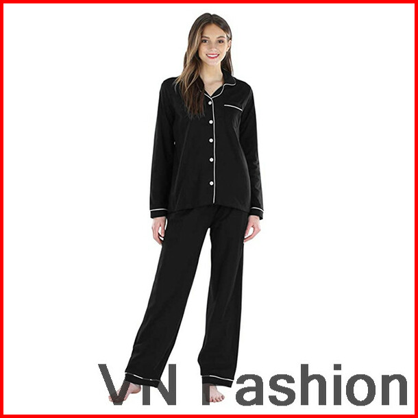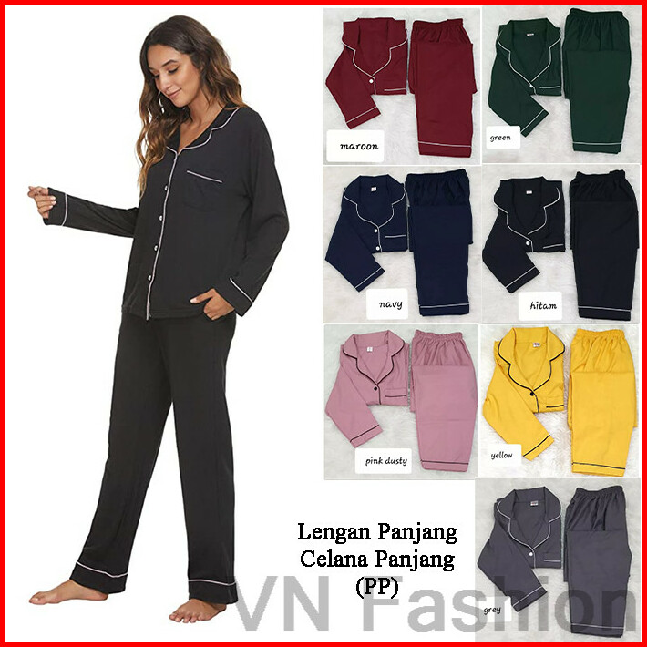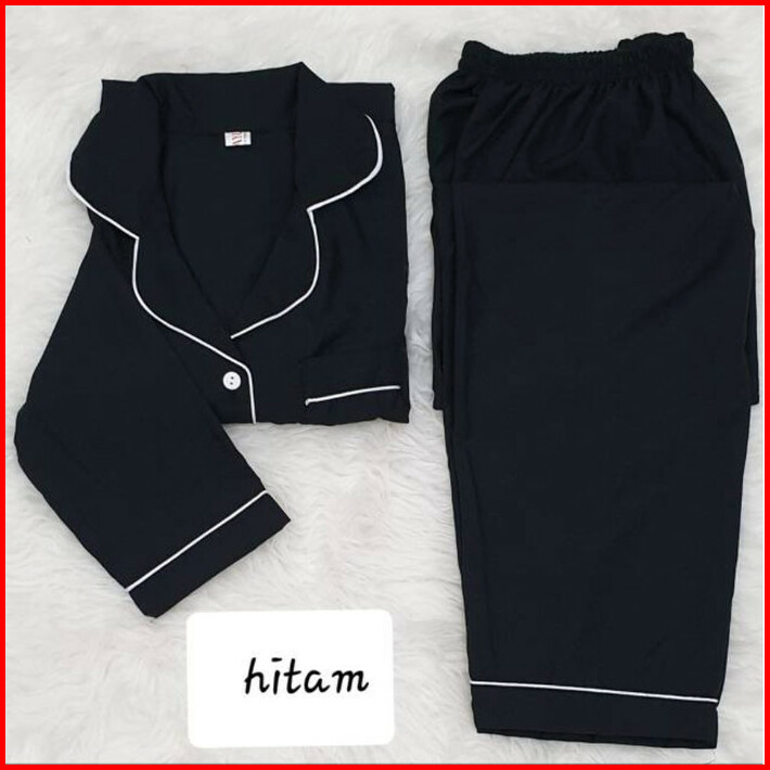 Baju Tidur Cewek Wanita Piyama Pajamas Katun Motif Polos Hitam Pp