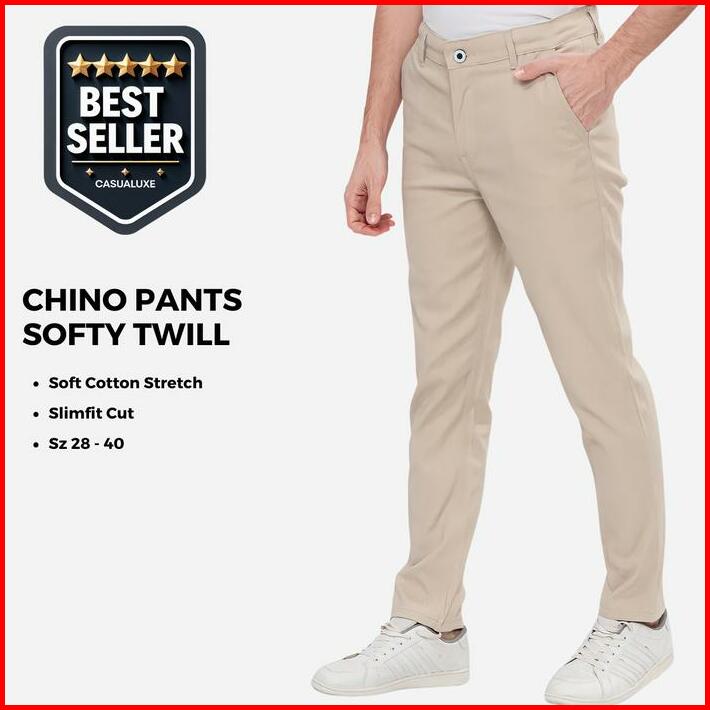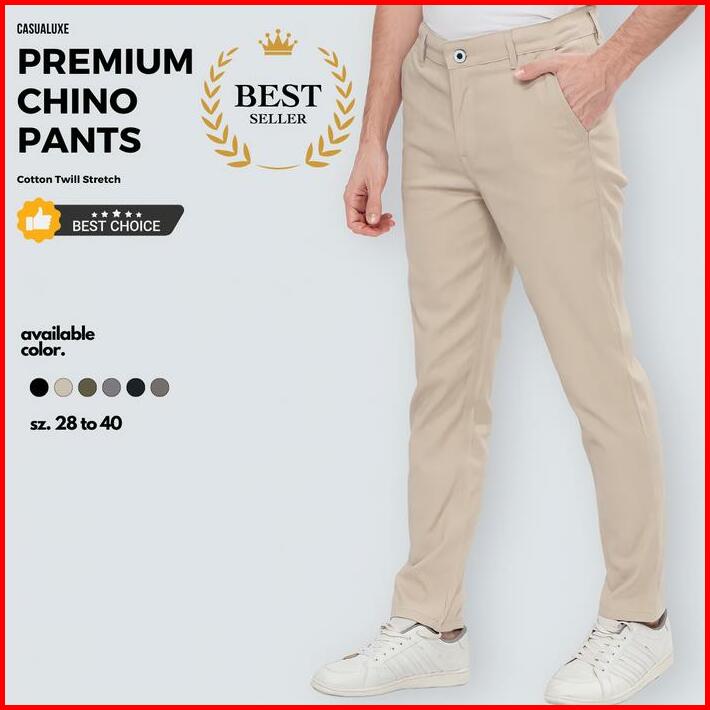 Casualuxe Celana Chino Panjang Pria Strecth Slimfit Bahan Katun Khaki Cream