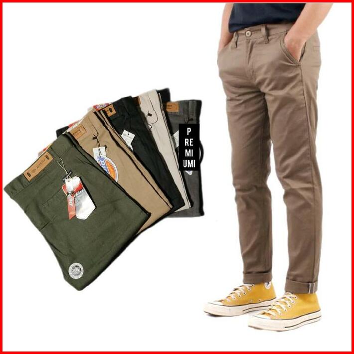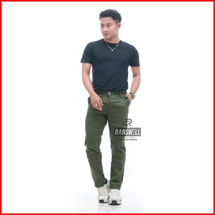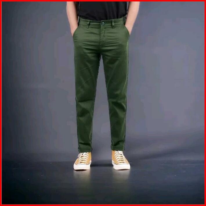 Chinos Panjang Pria Distro Katun Premium Hijau Army Mocca Cream Hitam Abu Celana Pria Nyaman Slimfit Casual Bahan Tebal