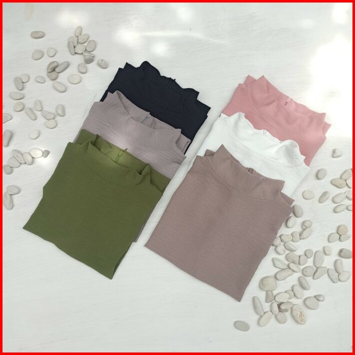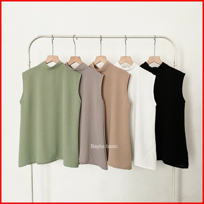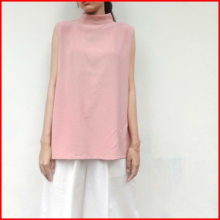 Inner Tanpa Lengan Turtleneck Crinkle Manset Sleeveless High Neck
