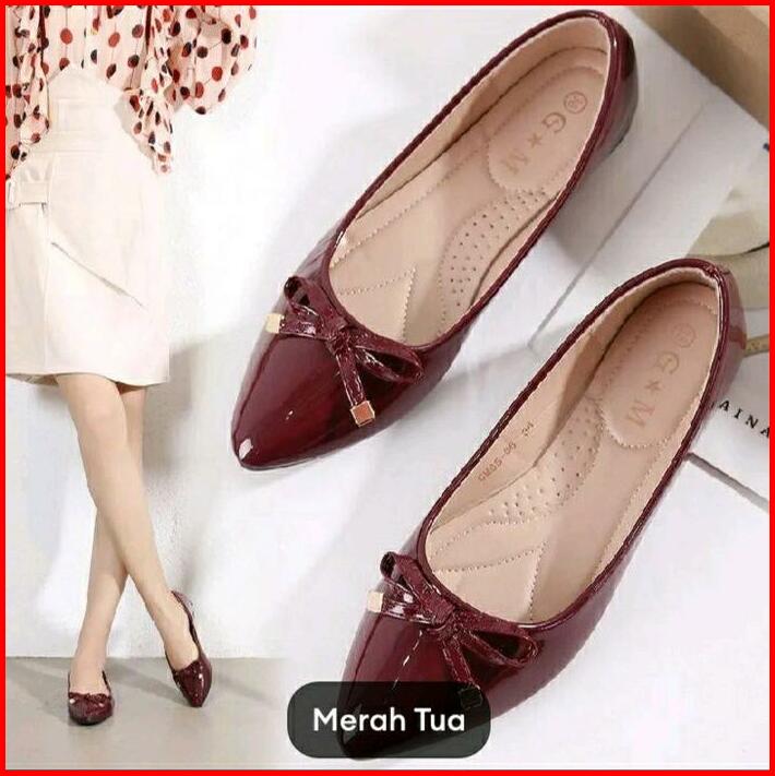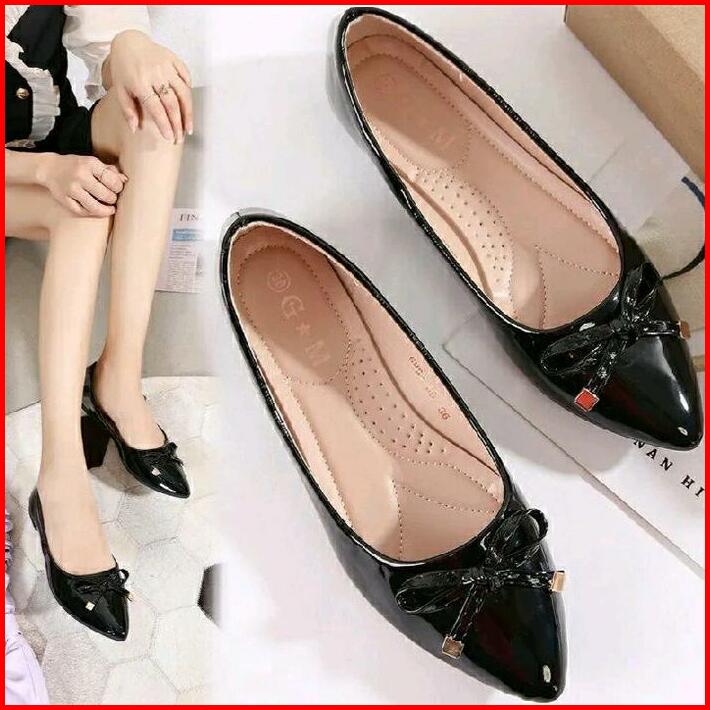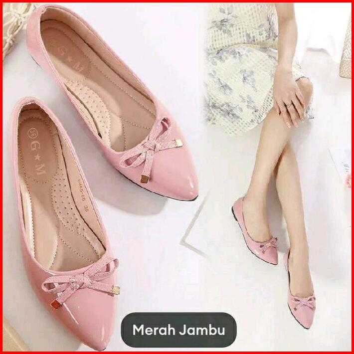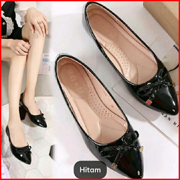 Flatshoes Wanita Flatshoes Trendy Flatshoes Buat Kerja Sekolah Flatshoes Glossy Pita Hitam