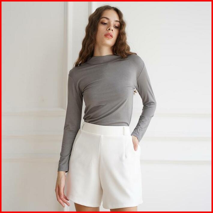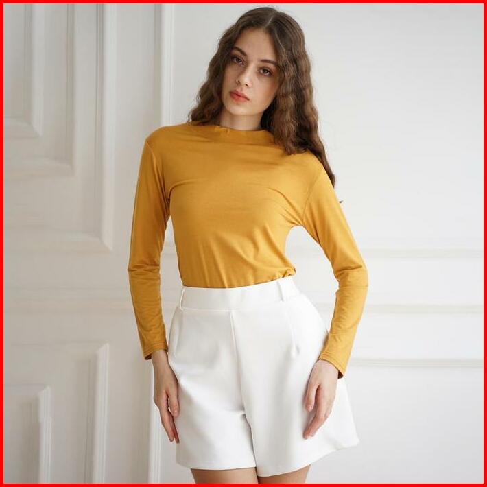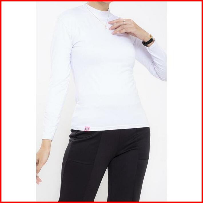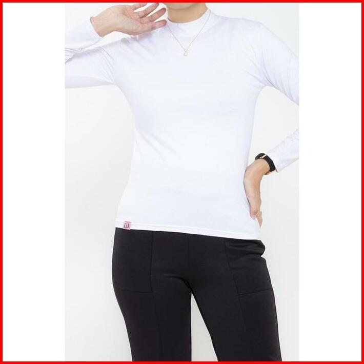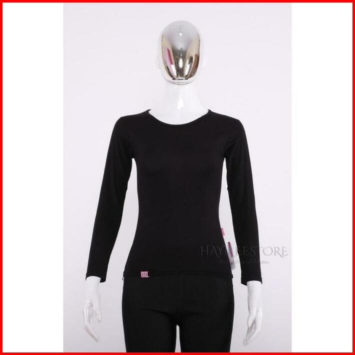 Haymeeidn Baju Manset Wanita Lengan Panjang Inner Dalaman Cewek Bahan Kaos Hitam Dan Putih Motif Polos