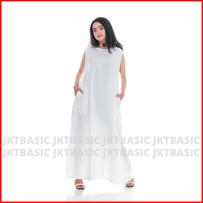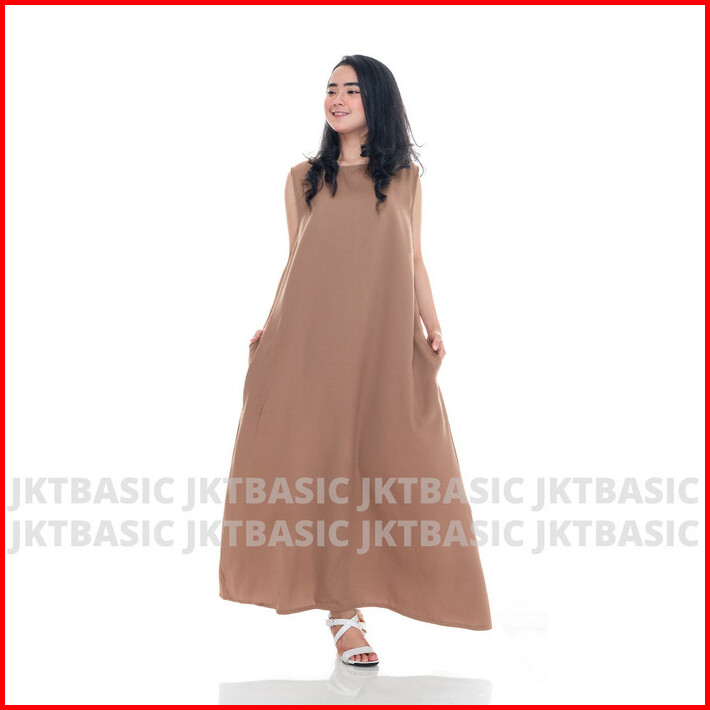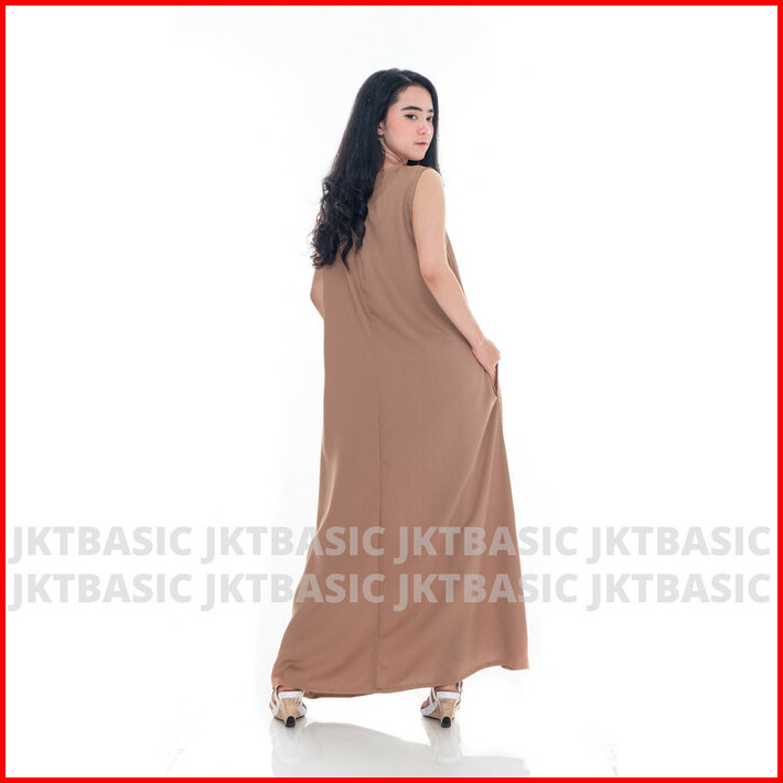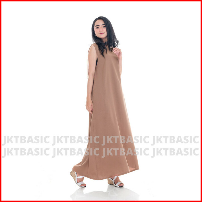 Inner Dress Tanpa Lengan Maxi Polos Panjang Oversize