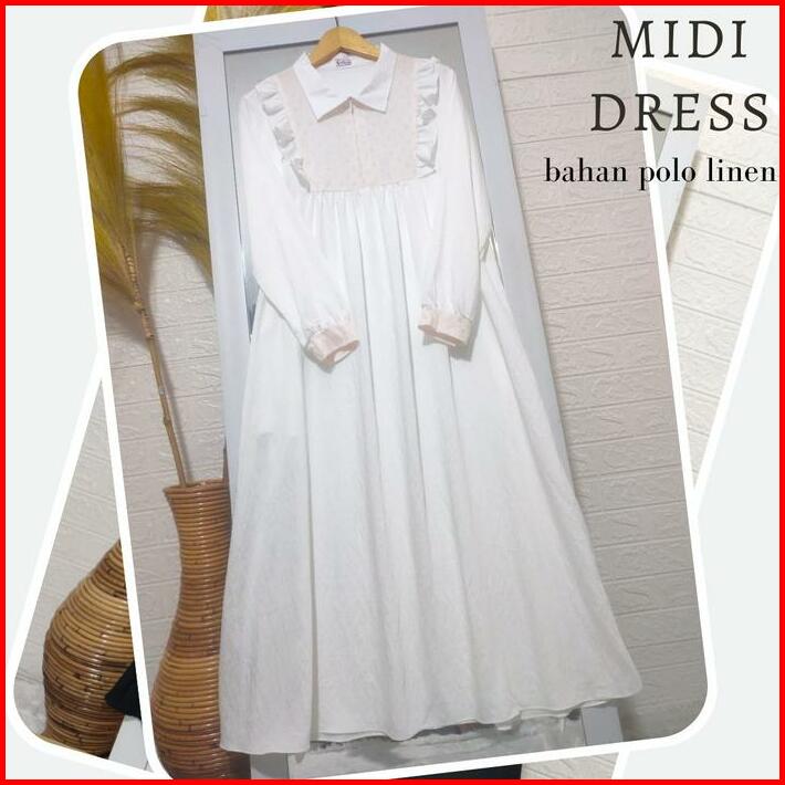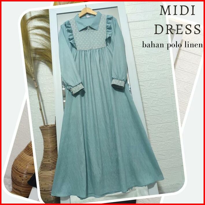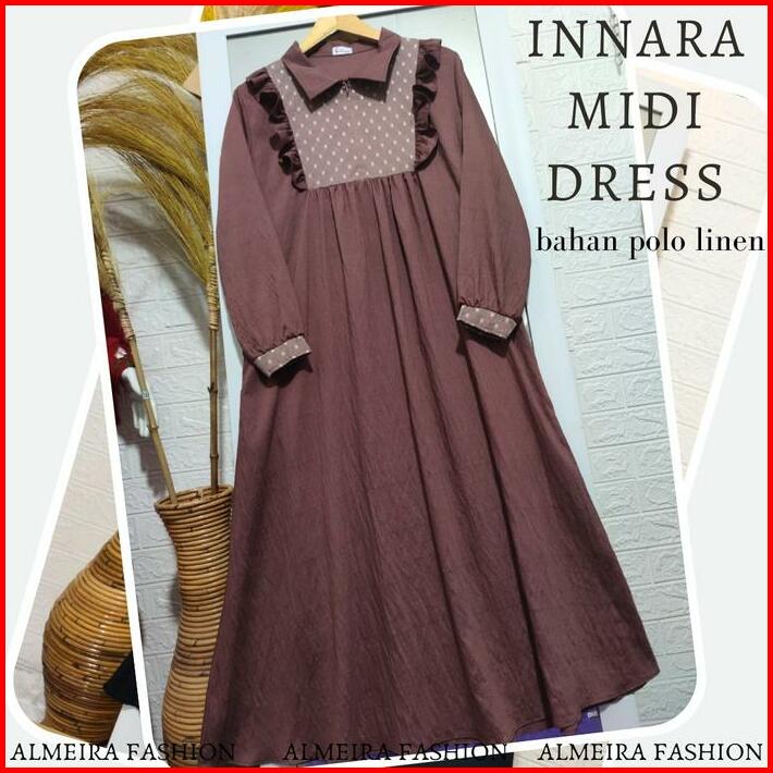 Innara Midi Dress Polo Linen Fashion Wanita Muslim Terbaru Bahan Polo Linen Premium Simpel Elegant Ld 110 Pb 125 Busui G