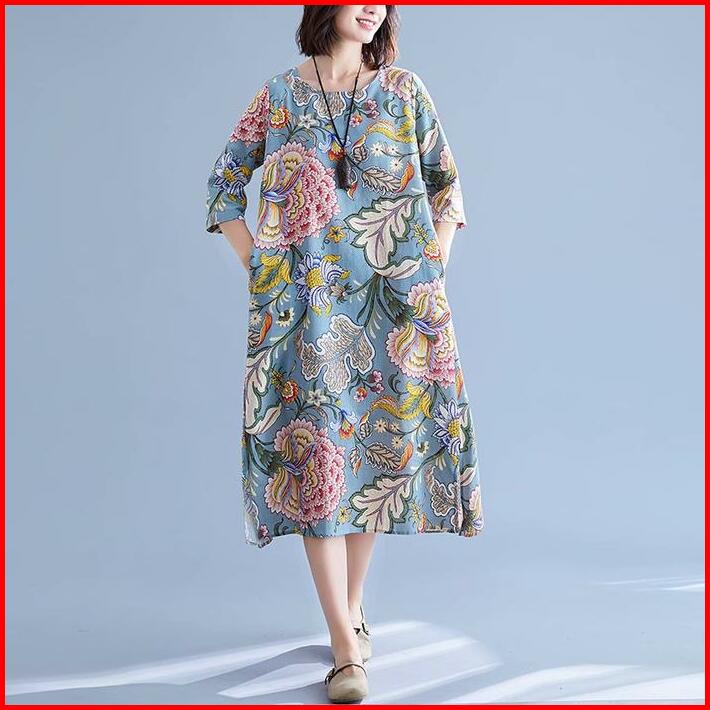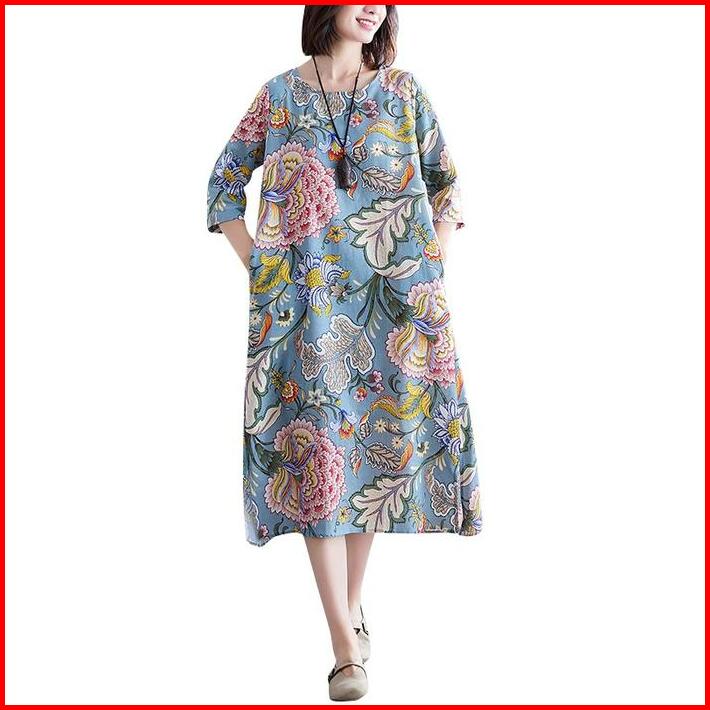 Lc643 Premium Midi Dress Floral Fashion Terbaru