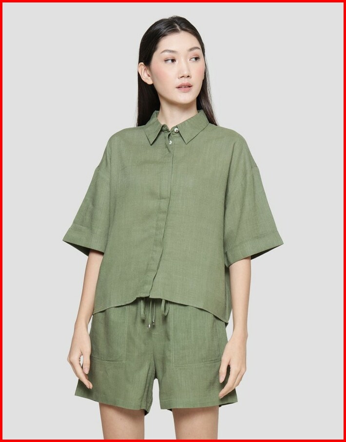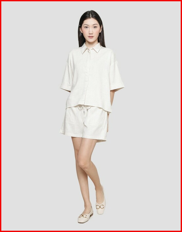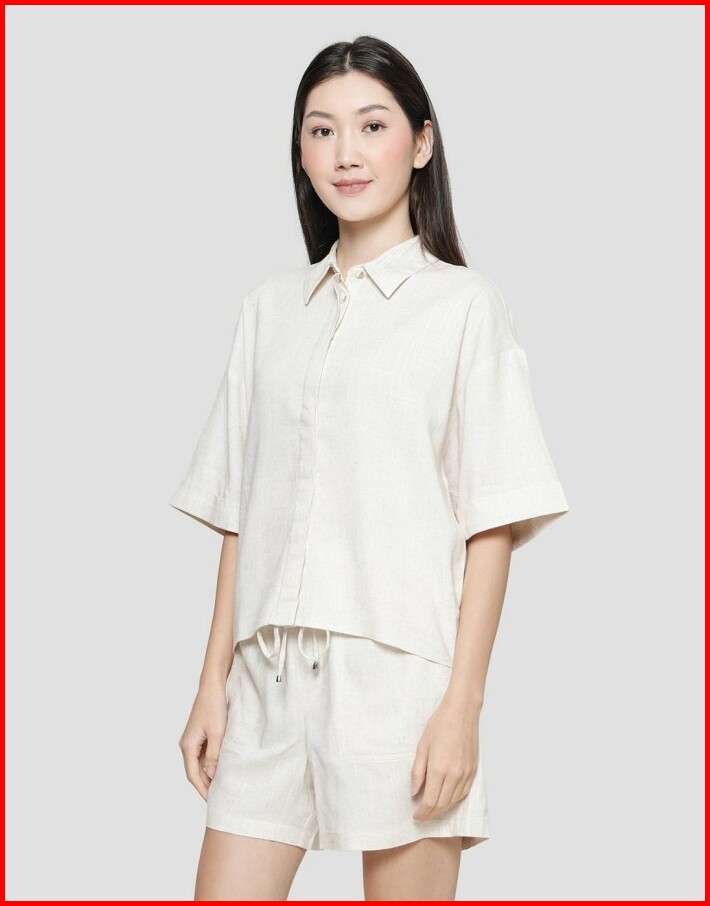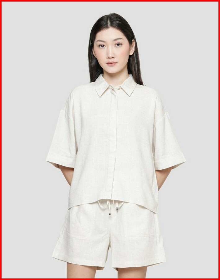 Connexion Linen Kemeja Oversize Lengan Pendek Wanita 121026943