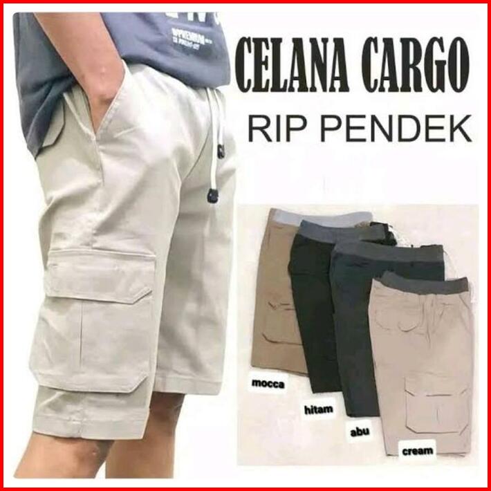 Celana Pendek Chinos Cargo Jumbo Bb 60-100kg Rip Pinggang Kolor Karet