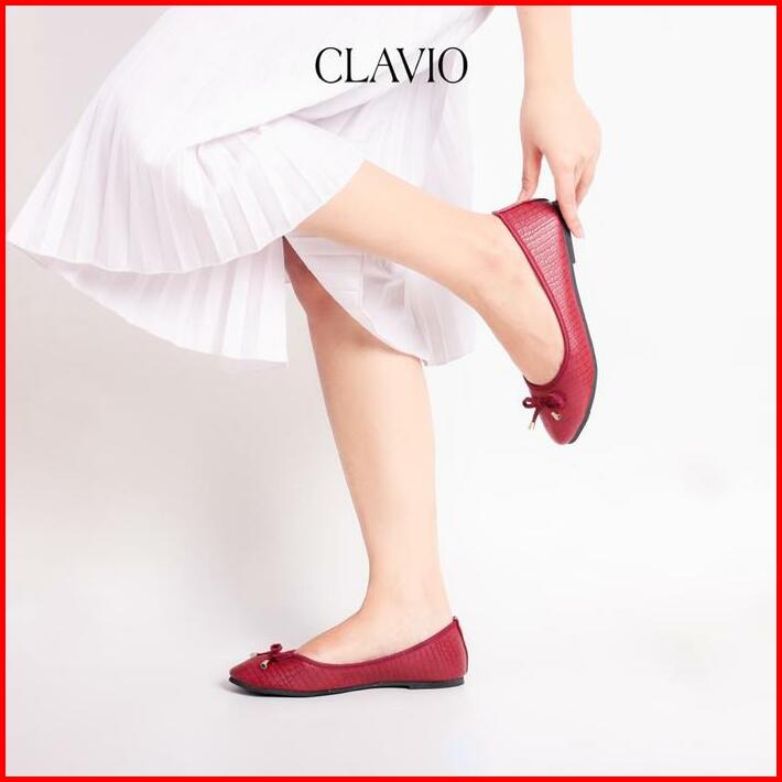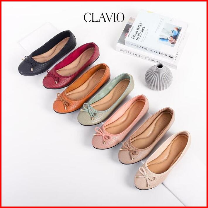 Clavio Clara Sepatu Flat Wanita Sendal Flatshoes Pansus Black Merah Kerja