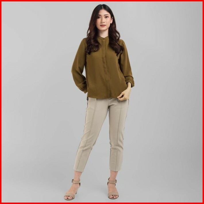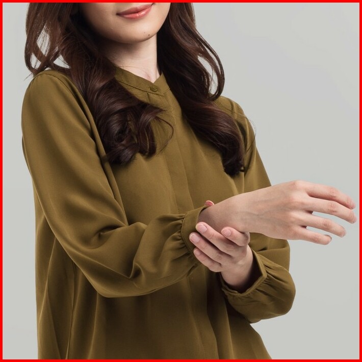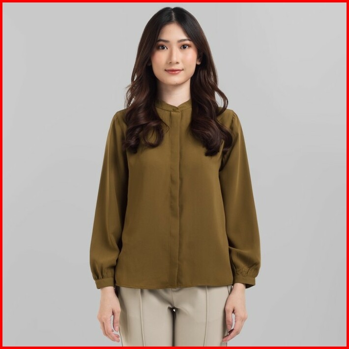 Benhill Kemeja Wanita Yena Tops Krah Shanghai Panjang Brown 811