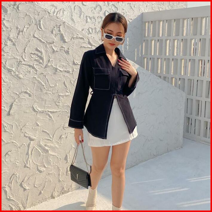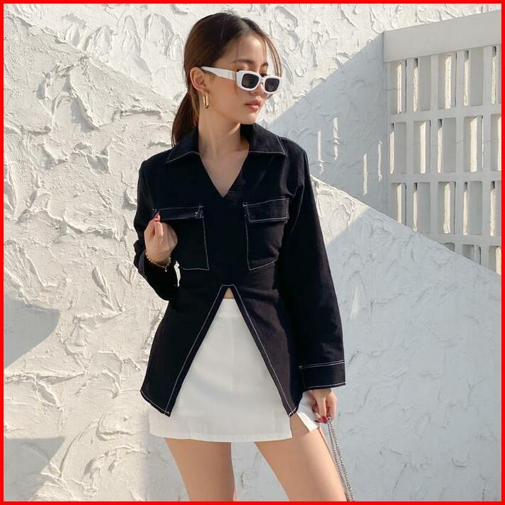 Vivi Slit Shirt Kemeja Kantor Lengan Panjang Belah Tengah Wanita